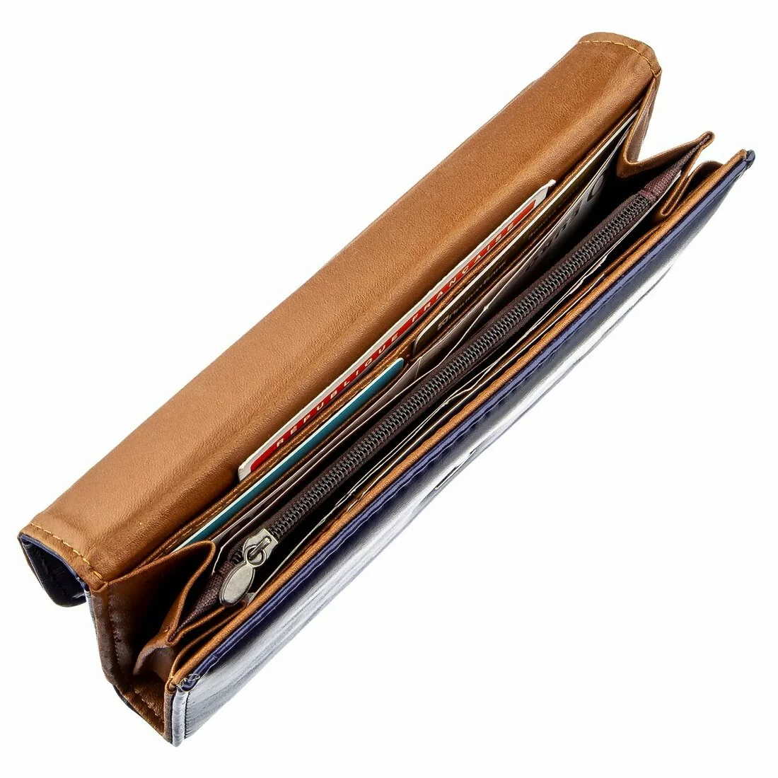 Женский классический тонкий кошелек из гладкой экокожи. Синий