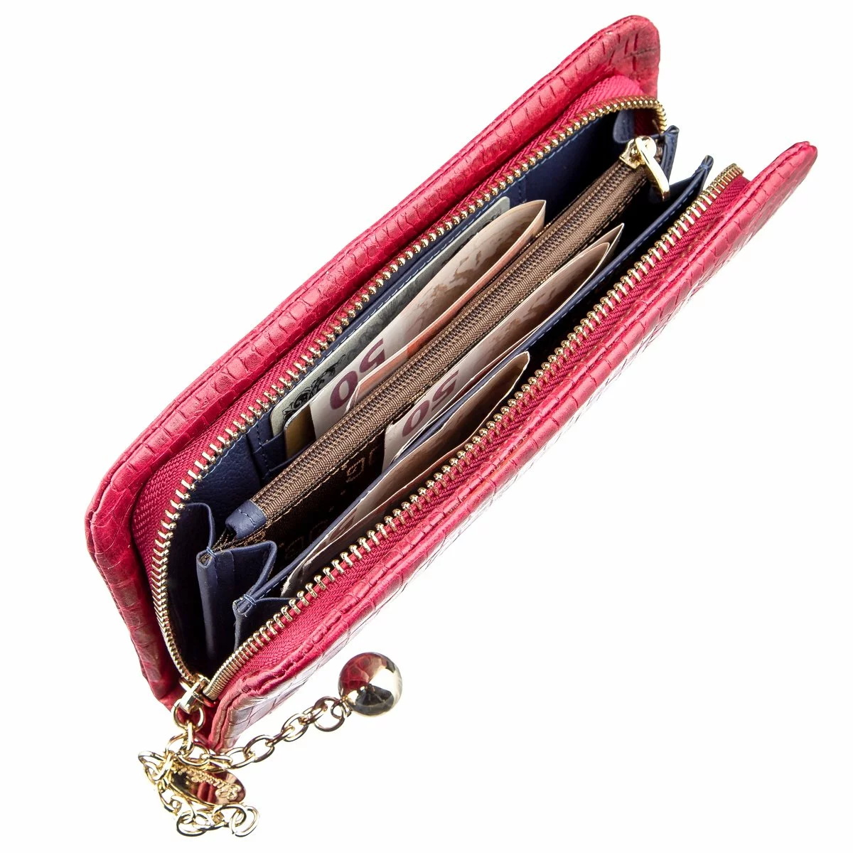 ощупь с тиснением под экзотическую кожу. Внутри кошелек изготовлен