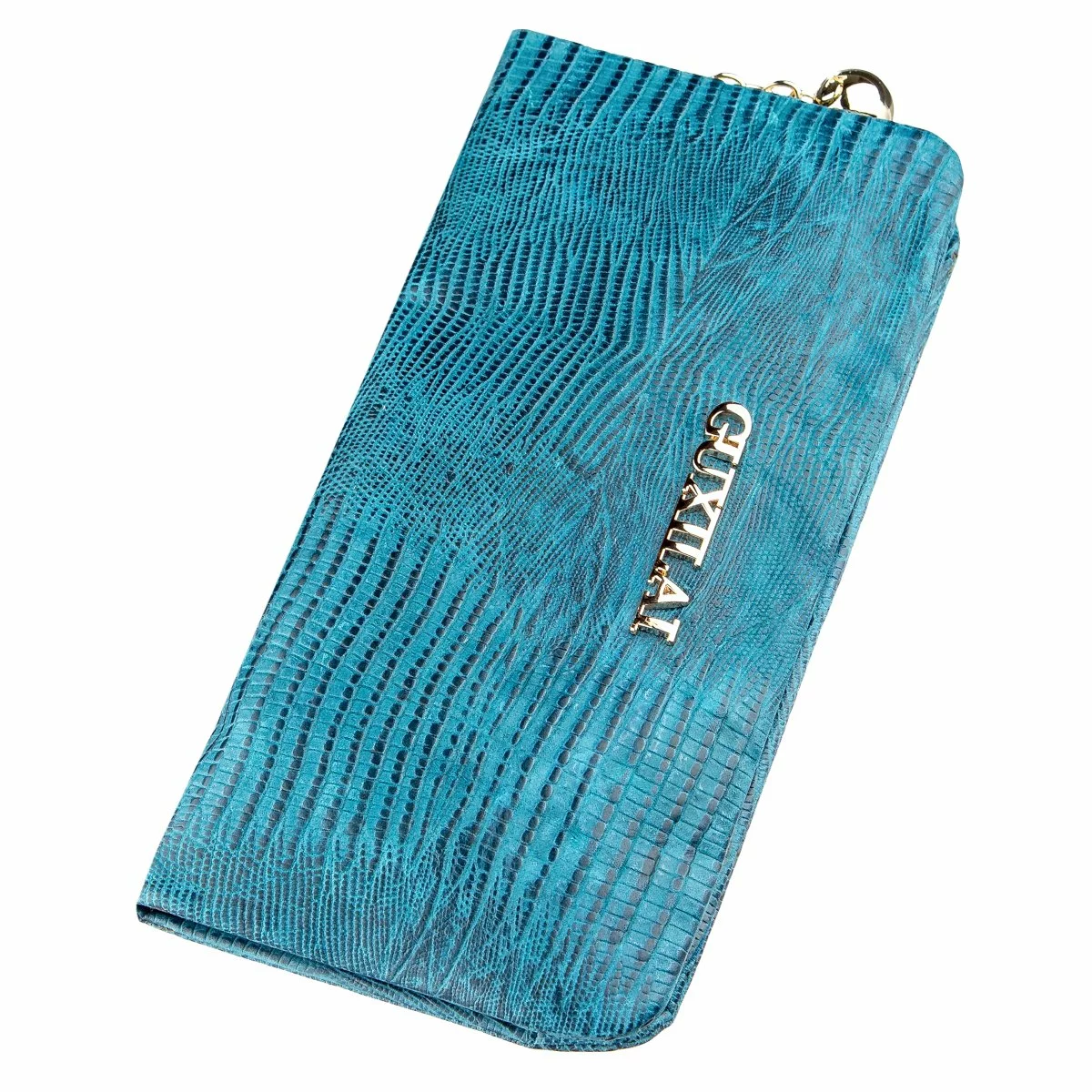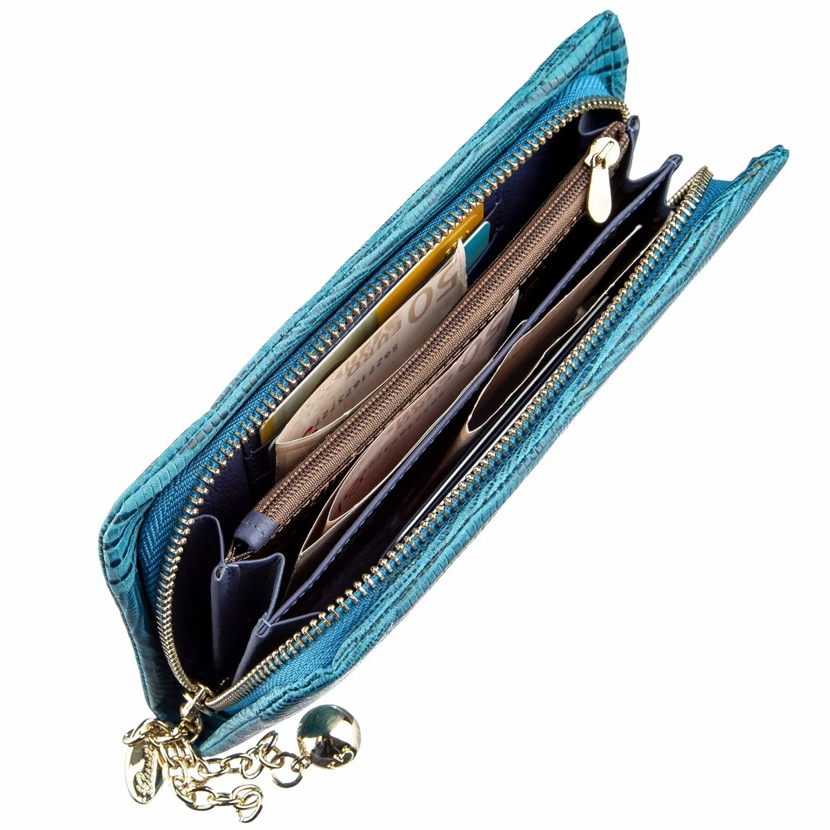 Синий женский кошелек с оригинальным тиснением. Модель мягкая и