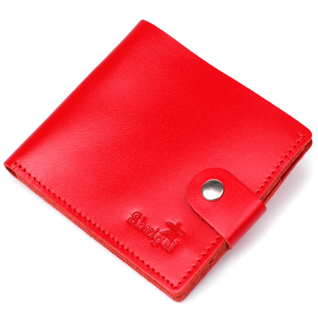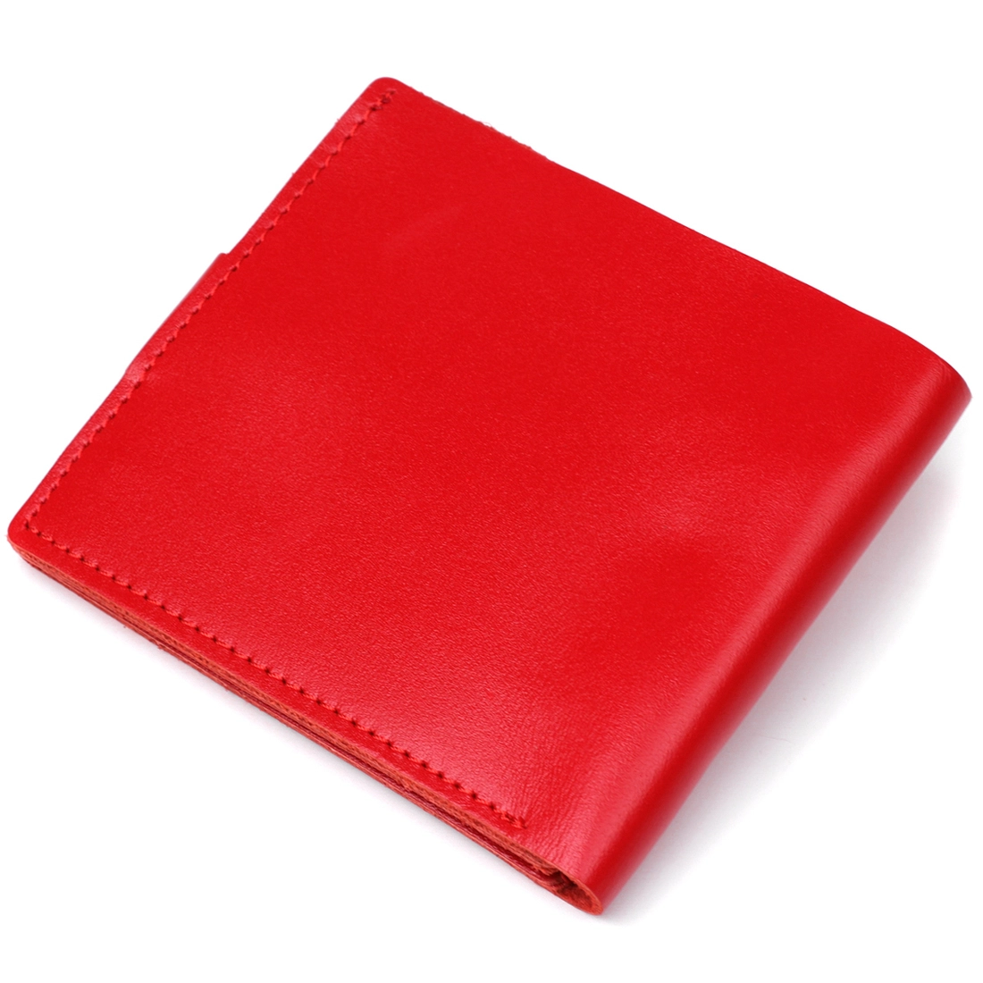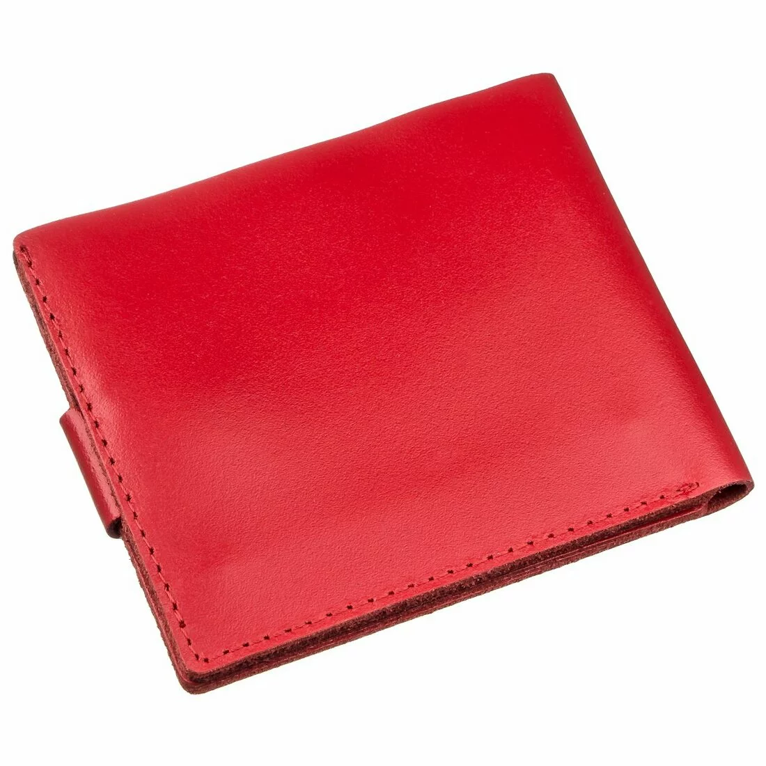 краям аксессуара ровная красная строчка. На лицевой стороне кошелек