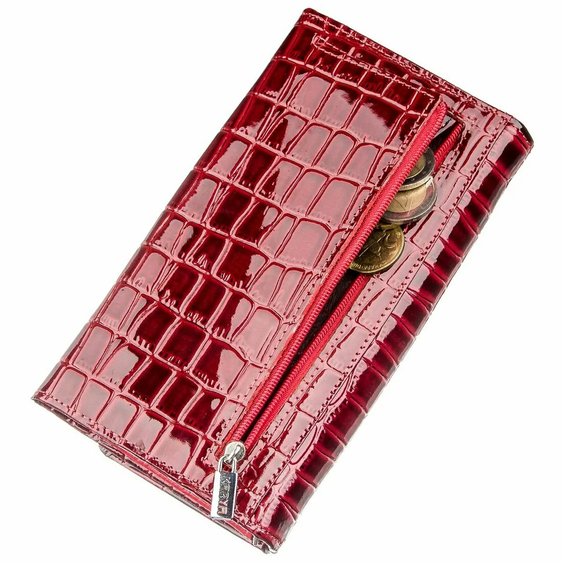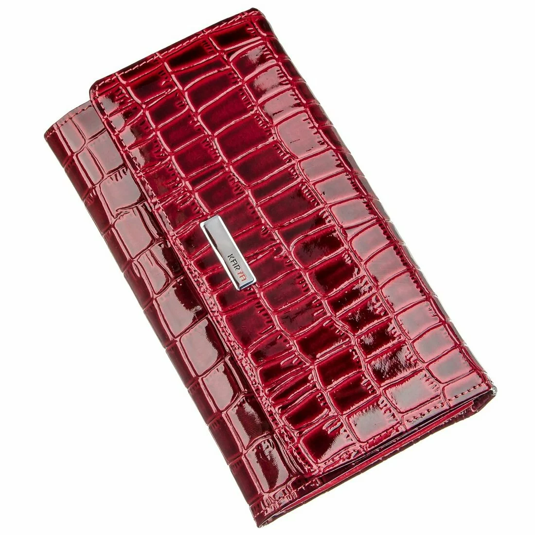 Изделие поместится в женскую сумку. Лаковое покрытие кошелька