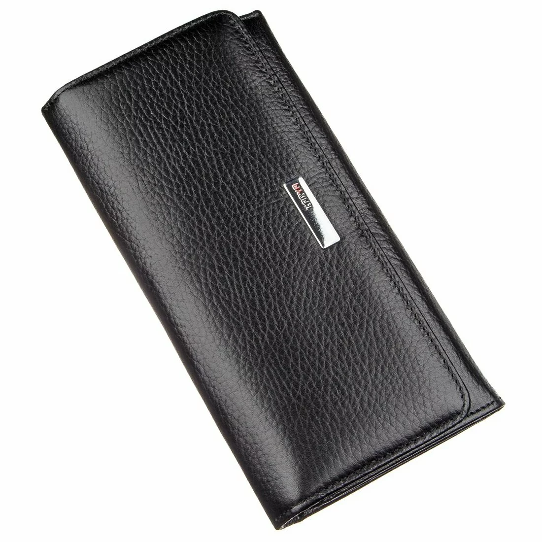 Стильный кошелек черного цвета из натуральной гладкой кожи с