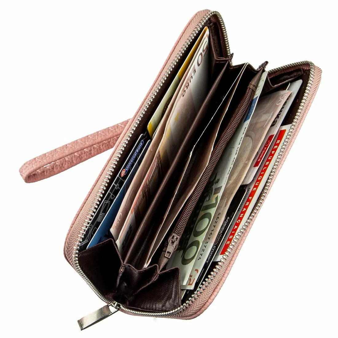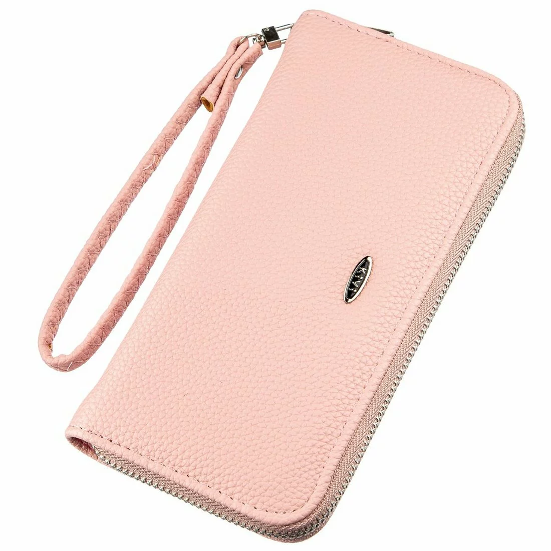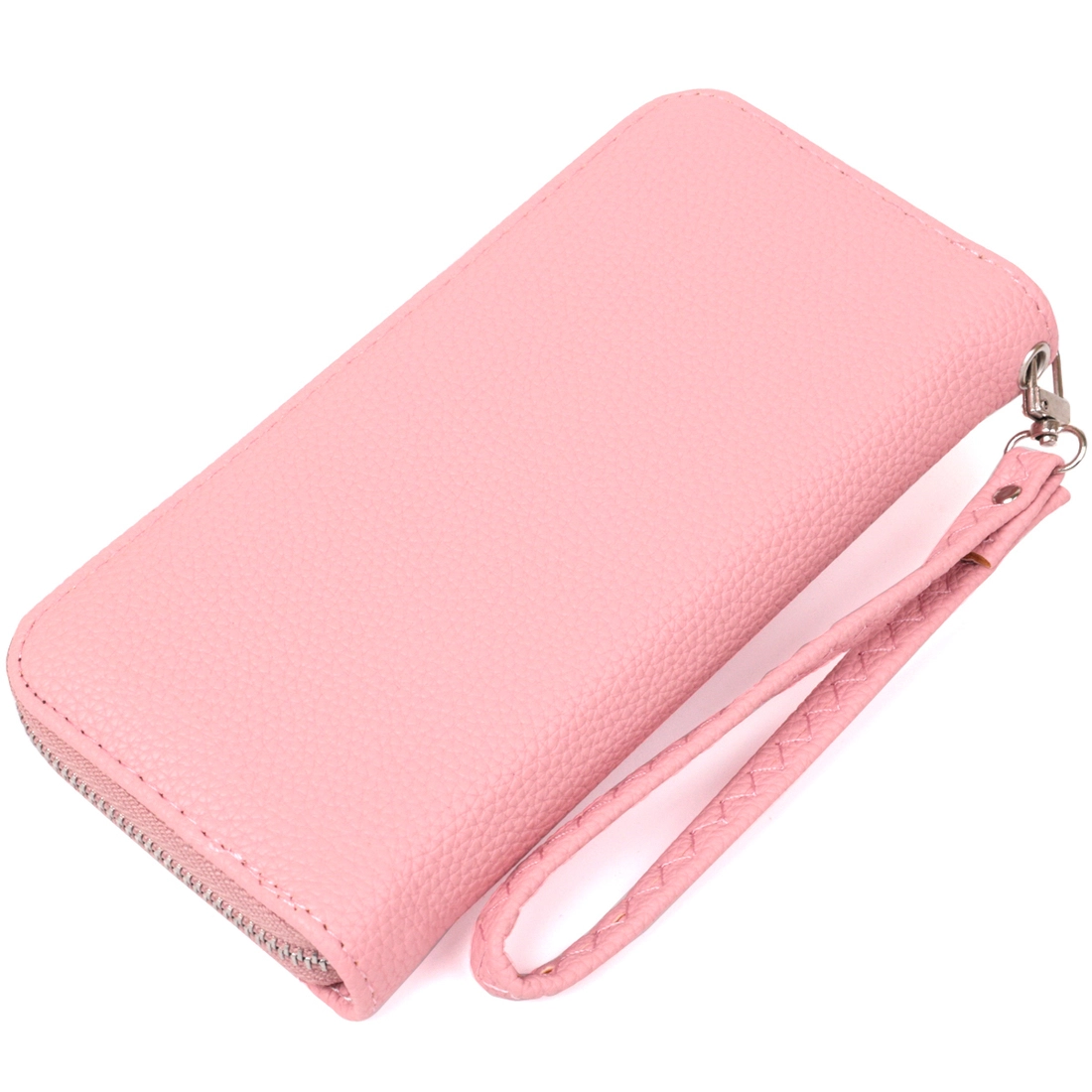 Нежно-розовый кошелек из экокожи с мелкой зернистостью станет