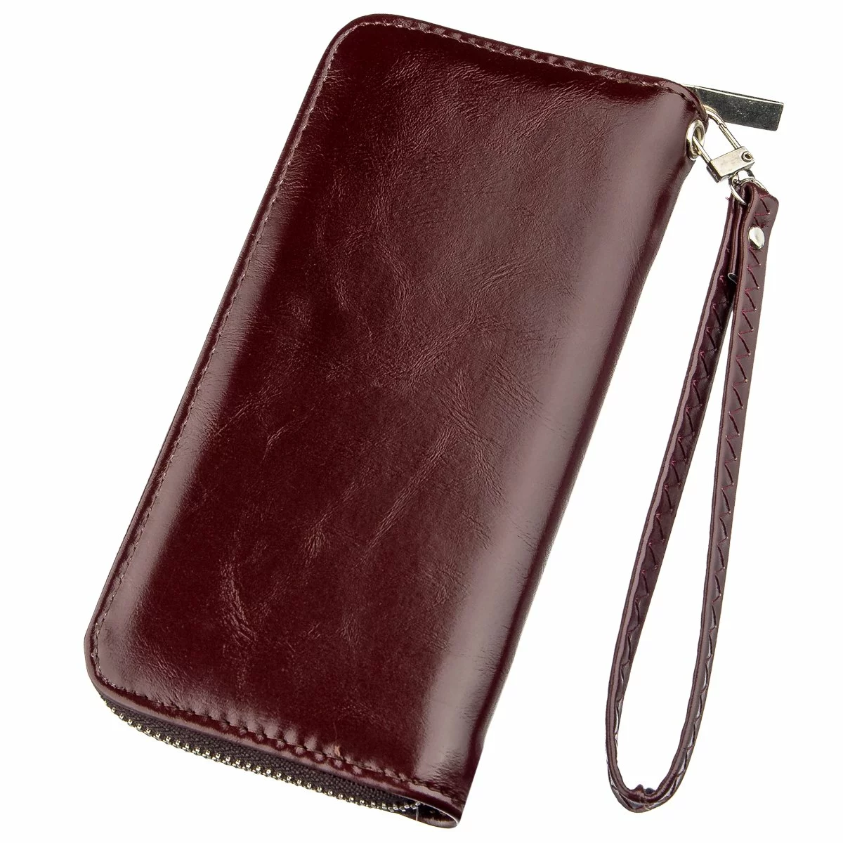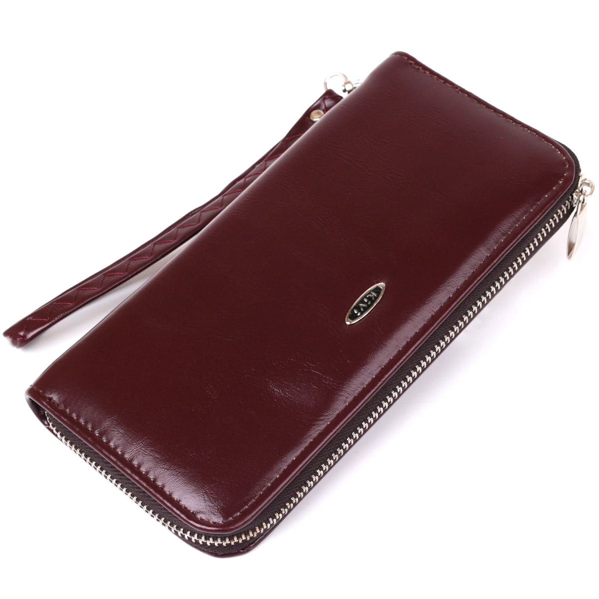 Утонченный женский кошелек из экокожи коричневого цвета.