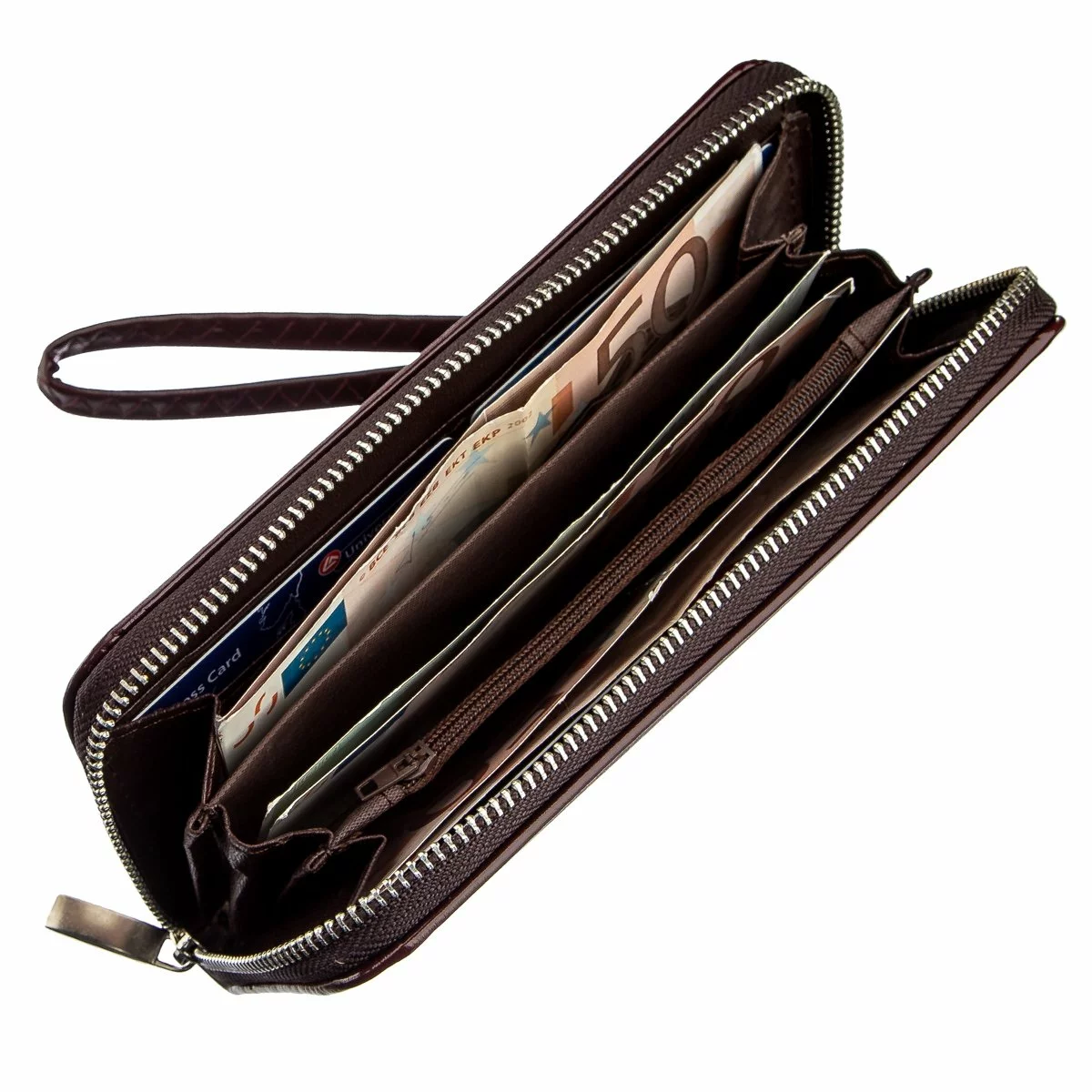 отделения для купюр, ячейки для карточек подобранные под размер,