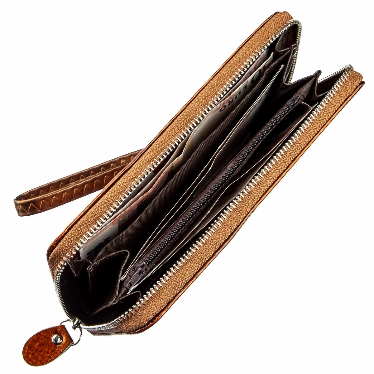 отделения для купюр, отделение на молнии и слоты для