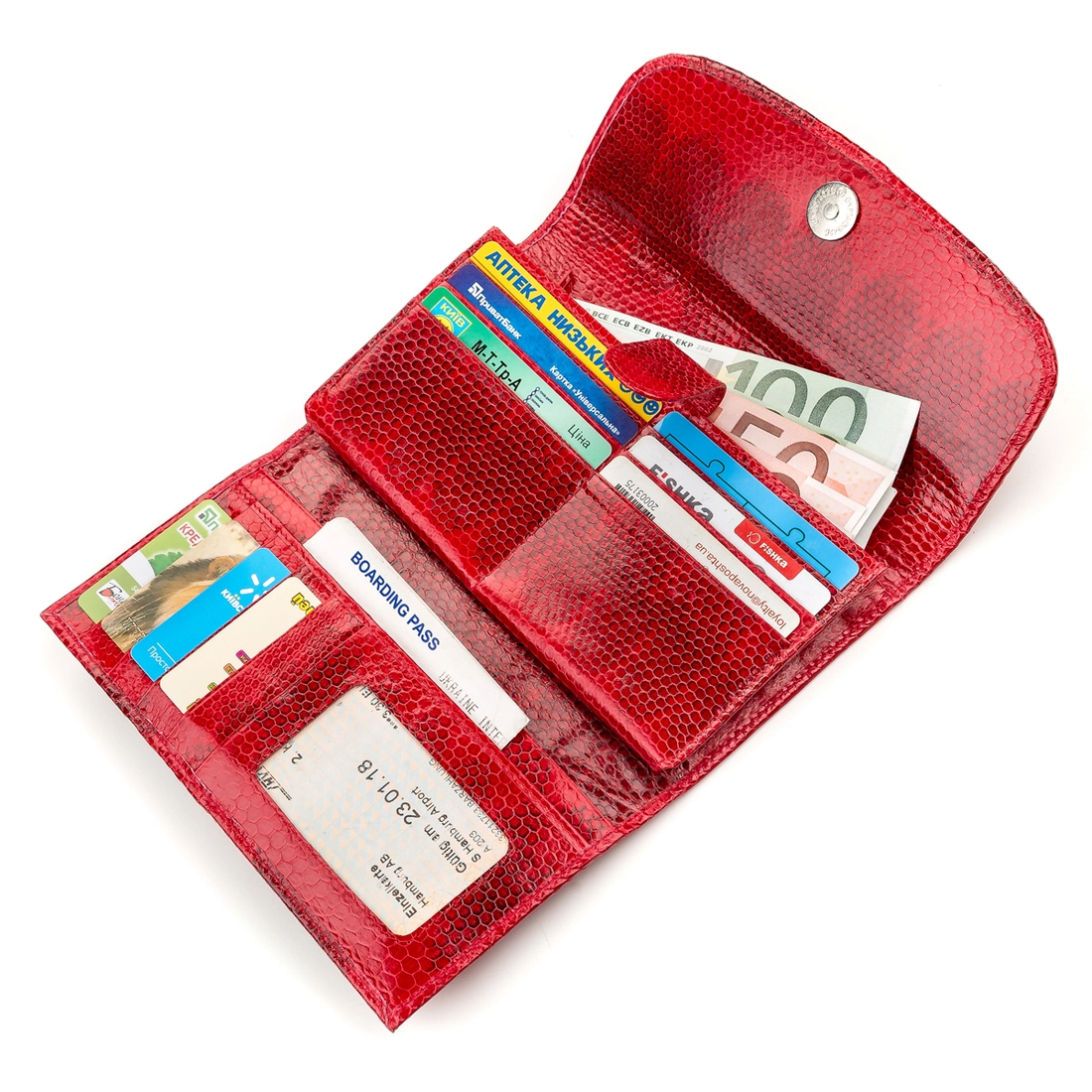 Яркий женский кошелек из натуральной кожи морской змеи, гладкой