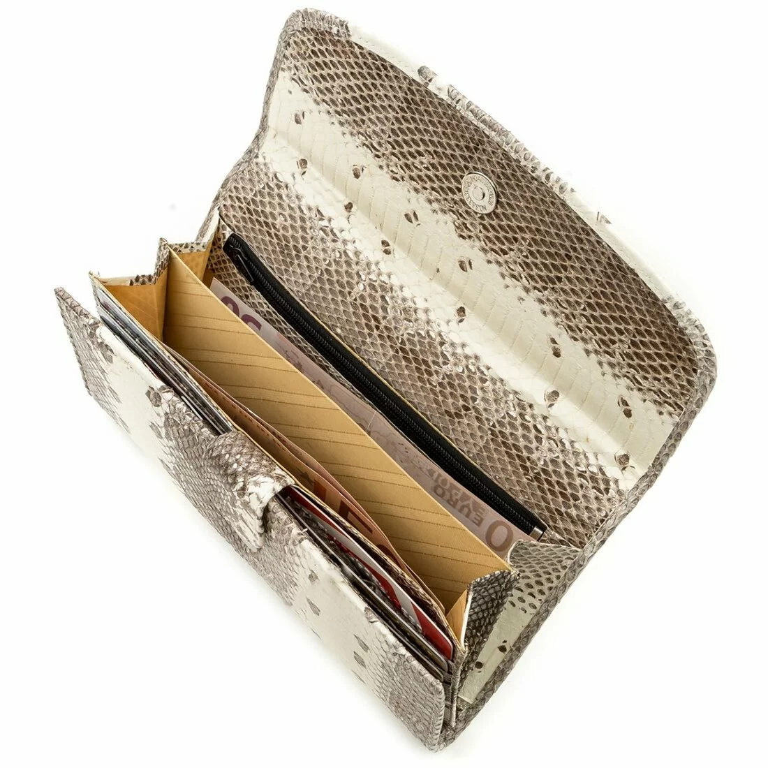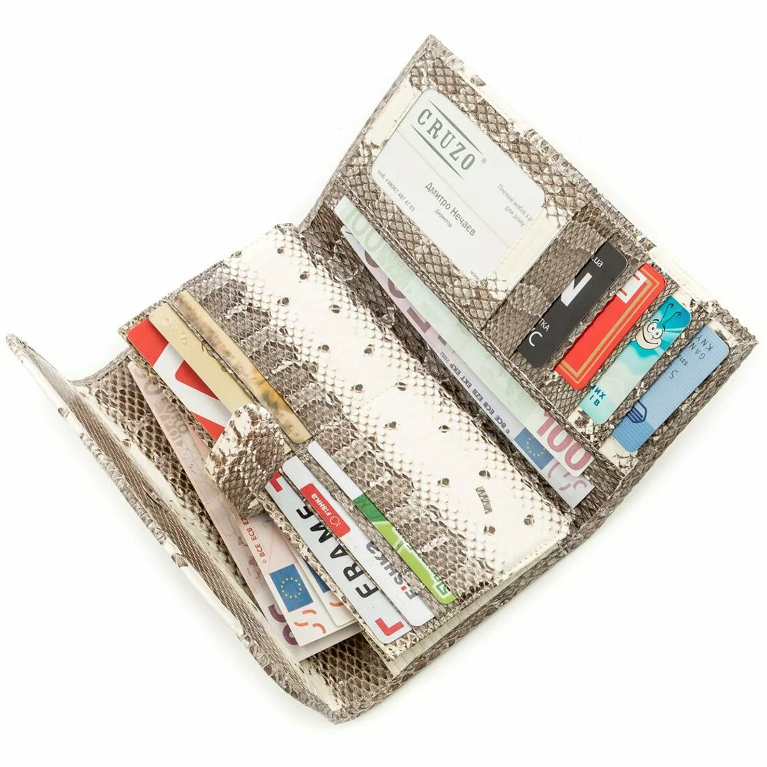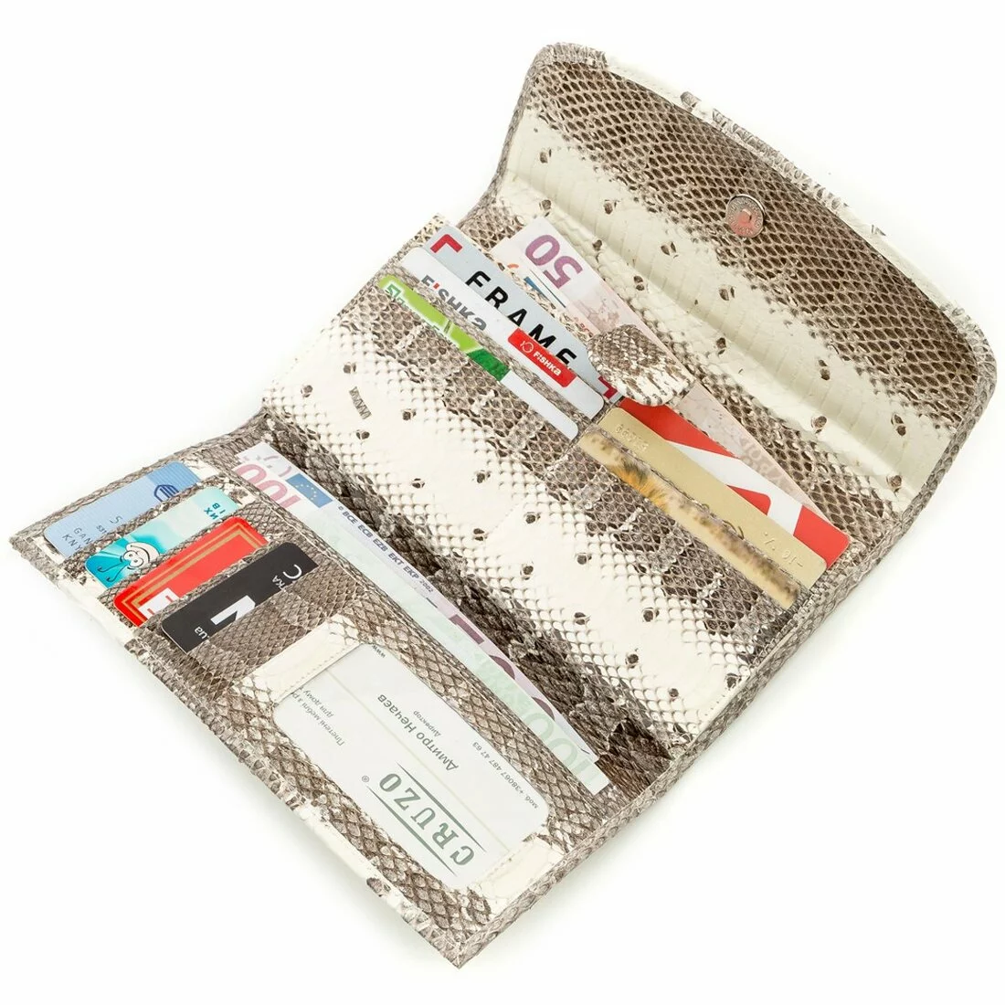 Классический женский кошелек из натуральной кожи морской змеи, гладкой и приятной на ощупь. Аксессуар имеет пастельную расцветку и прекрасно подойдет стильным роскошным женщинам, которые всегда хотят быть в тренде.