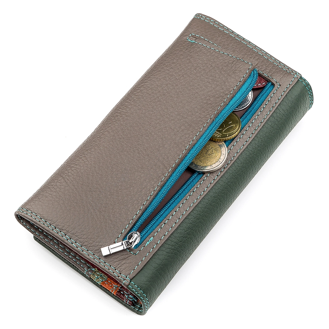 Данная модель отличается демократичной стоимостью и средними размерами. Кошелек изготовлен в уникальном цветовом исполнении. В качестве основного цвета используется красный, дополненный различными оттенками, создающими контраст. Застегивается аксессуар при помощи специального функционала с клапаном и кнопкой. Внутри кошелька имеются отделения для купюр. Между ними расположен карман для монет на застежке. Также в конструкции кошелька предусмотрены два прилегающих кармана и семь отверстий для платежных карточек. С обратной стороны кошелька есть внутренний карман на застежке. Данный аксессуар изготавливают из кожи, обладающей зернистой фактурой. В нашем интернет-магазине вы можете купить понравившуюся модель кошелька для себя или в качестве подарка для своих родных или близких.