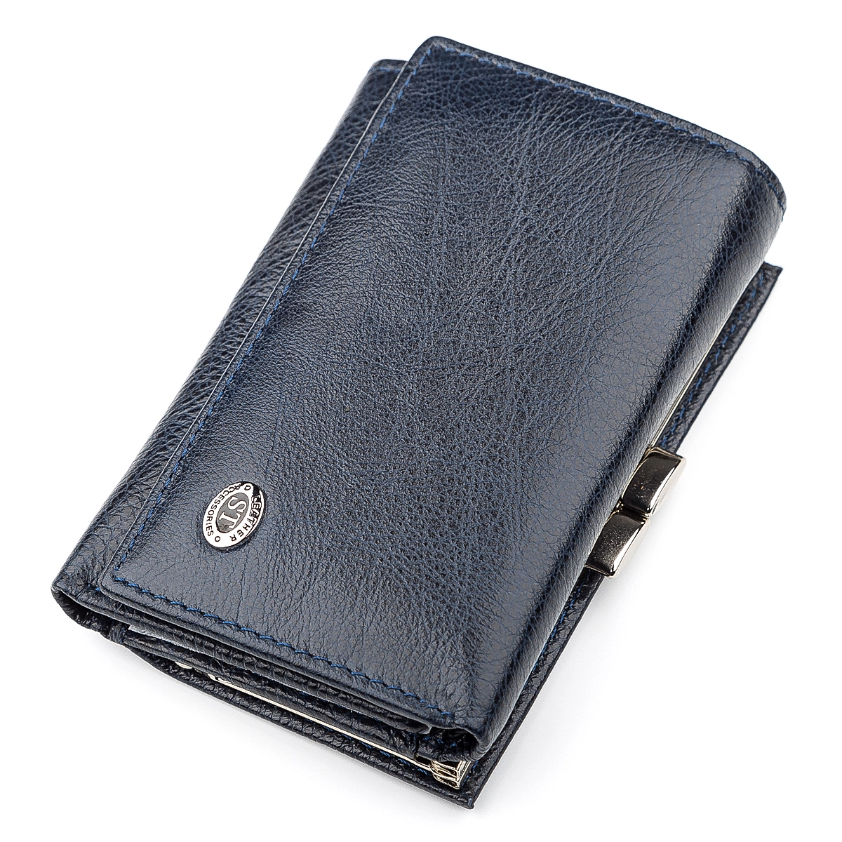 Модель компактного женского аксессуара, который может вместиться в любой дамской сумочке. Конструкция кошелька складывается в три раза, при этом клапан застегивается на специальную кнопку. Каждая представительница прекрасного пола непременно оценит функционал данной модели: отсеки для купюр, ячейки для кредиток и обязательно монетница. Кошелек изготовлен из качественной натуральной говяжьей кожи и серебристой надежной фурнитуры. В нашем интернет-магазине вы можете купить понравившуюся модель женского кошелька по цене, которая вас приятно удивит.