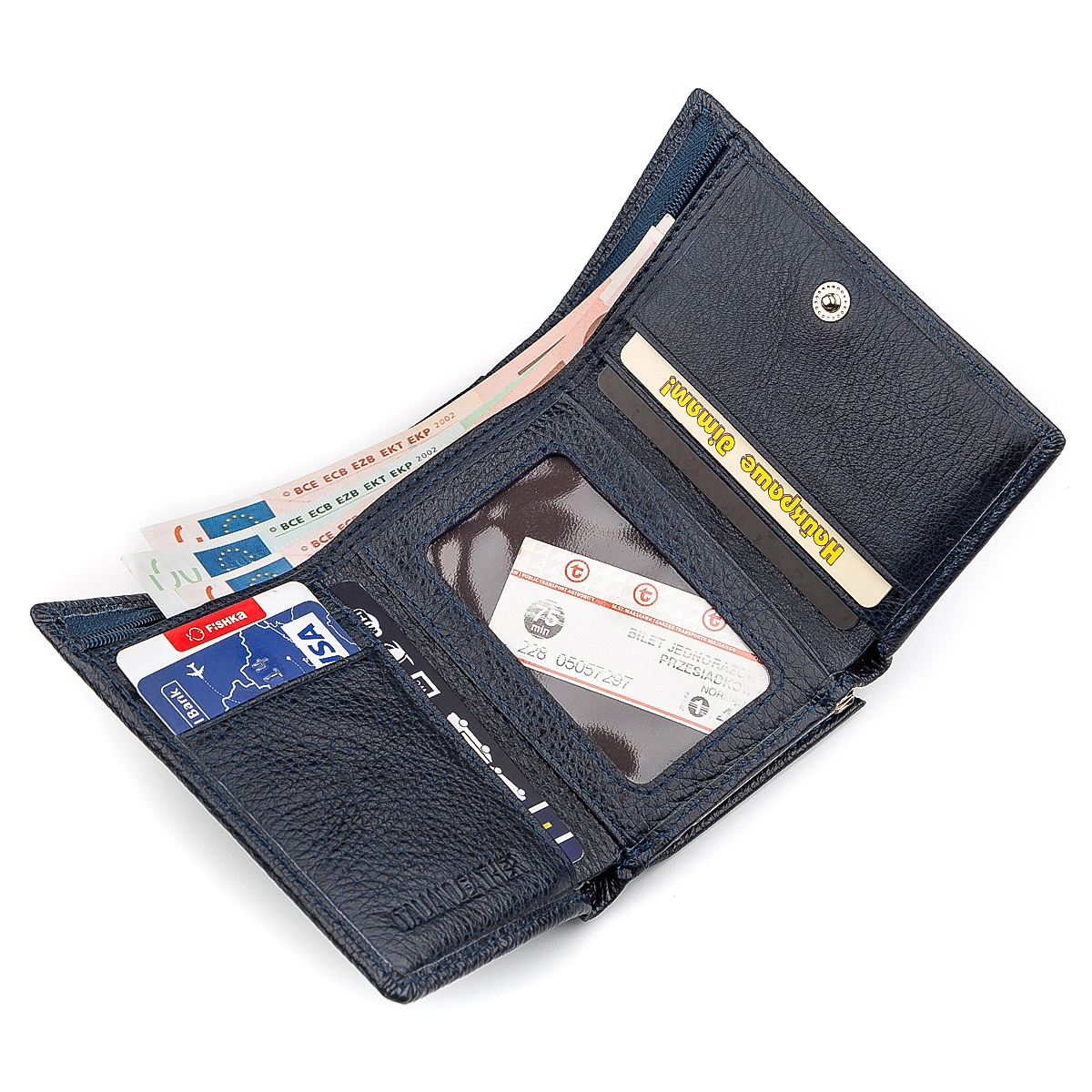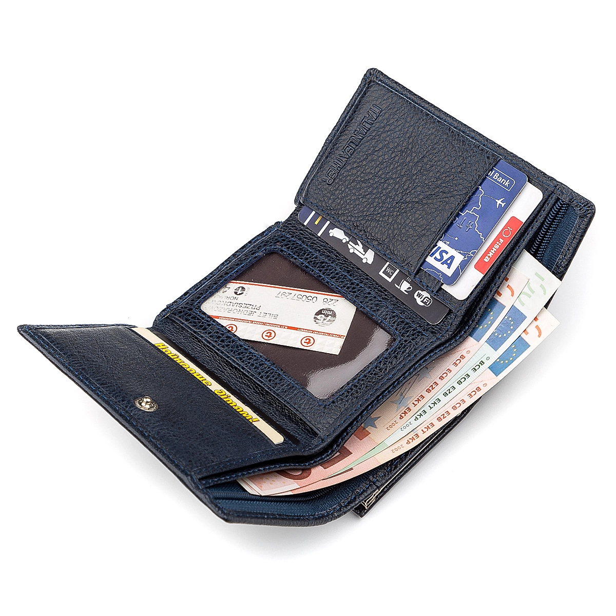 3 отделения для бумажных денег (одно из них на молнии);
