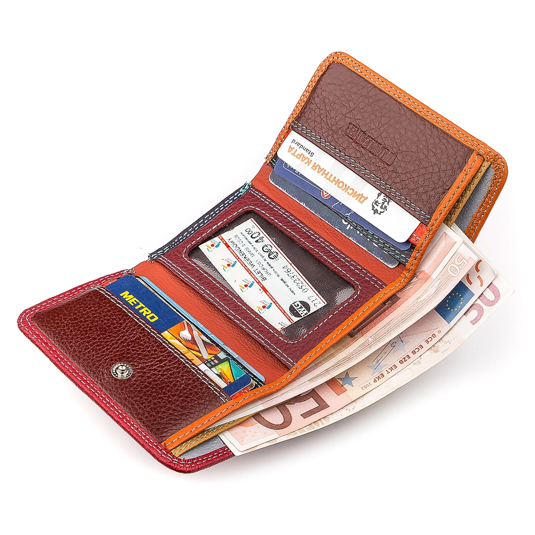 Привлекательность данной модели заключается в смелом сочетании дерзких и смелых оттенков. Современная линейка COLORFUL LINE представляет уникальную модель, объединившую в себе смелые цвета и грамотное наполнение. Данная модель кошелька складывается в три раза и имеет фиксацию на кнопке. На внутреннем развороте открыт доступ к нескольким отделам для бумажных денег и четырем слотам для кредиток. Также кошелек имеет специальное отверстие с окошком для различных документов. В нашем интернет-магазине вы можете выбрать необходимую модель кошелька по доступной для вас стоимости.