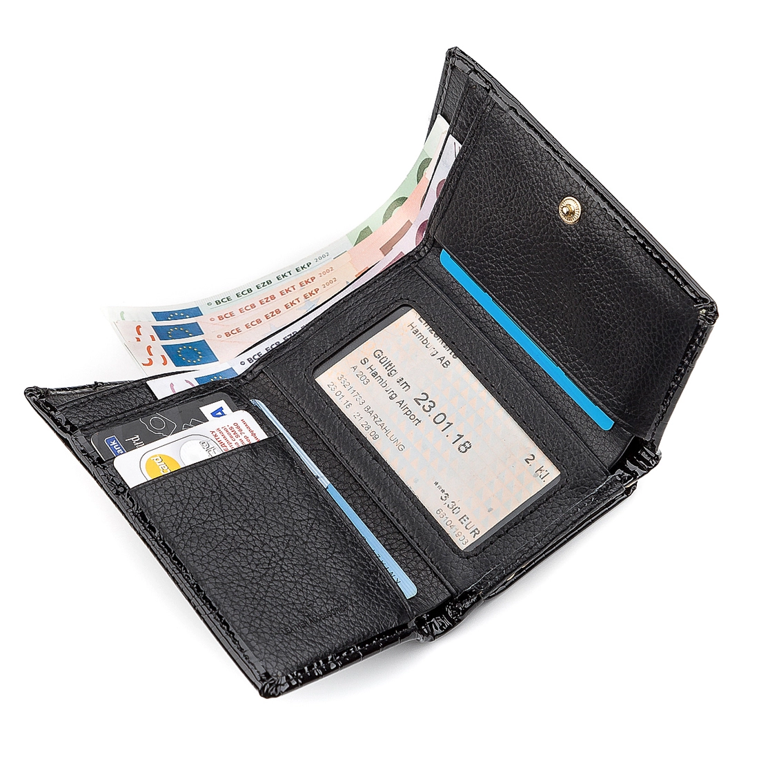 3 отделения для банкнот (одно из них закрывается на молнию);