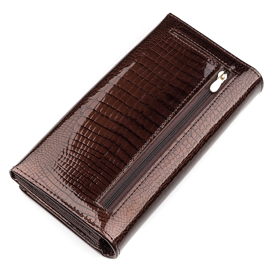 Данная модель кошелька выполнена из качественной говяжьей кожи снаружи, а внутренняя отделана со свиной и декорирована под кожу крокодила. Основной функционал порадует хорошими возможностями: 4 отделения для банкнот, специальные сегменты для платежных карточек, прилегающие отсеки, прозрачное окошко и карман для монет на молнии. Закрывается аксессуар клапаном с фиксацией на металлическую кнопку. В ассортименте, представленном на нашем сайте, каждый сможет подобрать себе отличные аксессуары, изготовленные из качественных материалов.