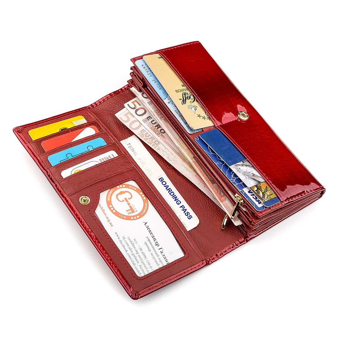 9 ячеек для кредитных карт (одна из них под прозрачной
