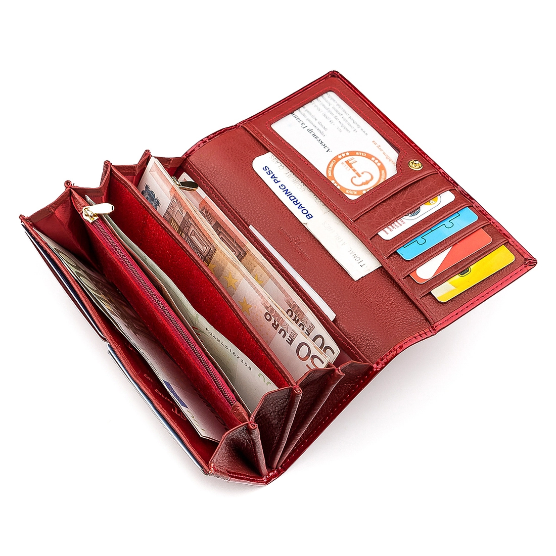Отличная классическая модель кошелька, выполненная из натуральной, прочной и качественной говяжьей кожи в шикарном красном цвете, понравится стильным и элегантным женщинам. Аксессуар имеет специальную прозрачную секцию для прав, платежных карт или фото также представлена стандартная комплектация: 4 отсека для бумажных денег, сегменты для банковских карт и монетницу с надежным фиксатором, разделенной на три отсека. Внутренняя все пошито со свиной кожи и текстиля высокого качества. Наш интернет-магазин предлагает огромный выбор качественной продукции по доступным ценам.