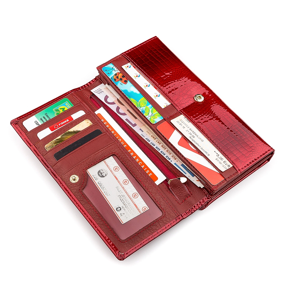 9 ячеек для кредитных карт (одна из них под прозрачной