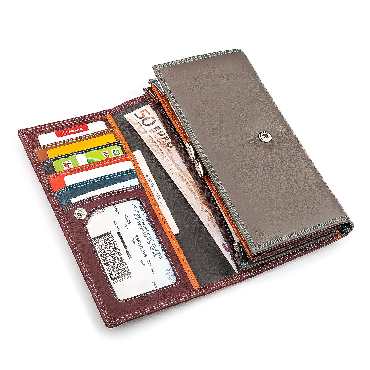 защелкивается молнией. Отдельно располагается отдел для платежных
