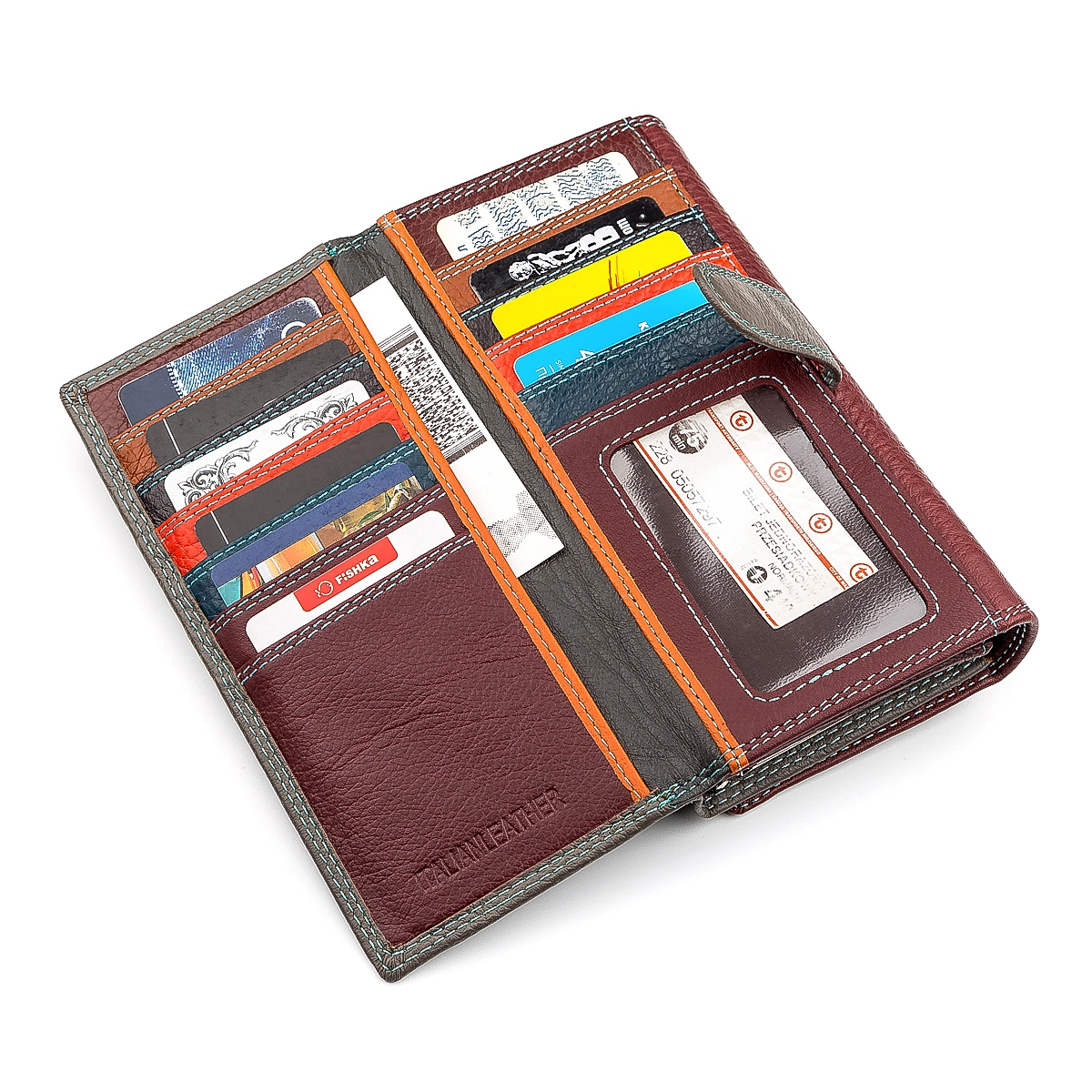 Сочетание бордового и серого цветов придает кошельку особенности