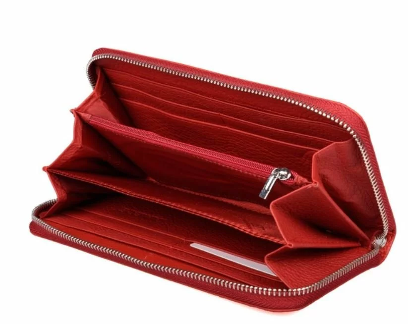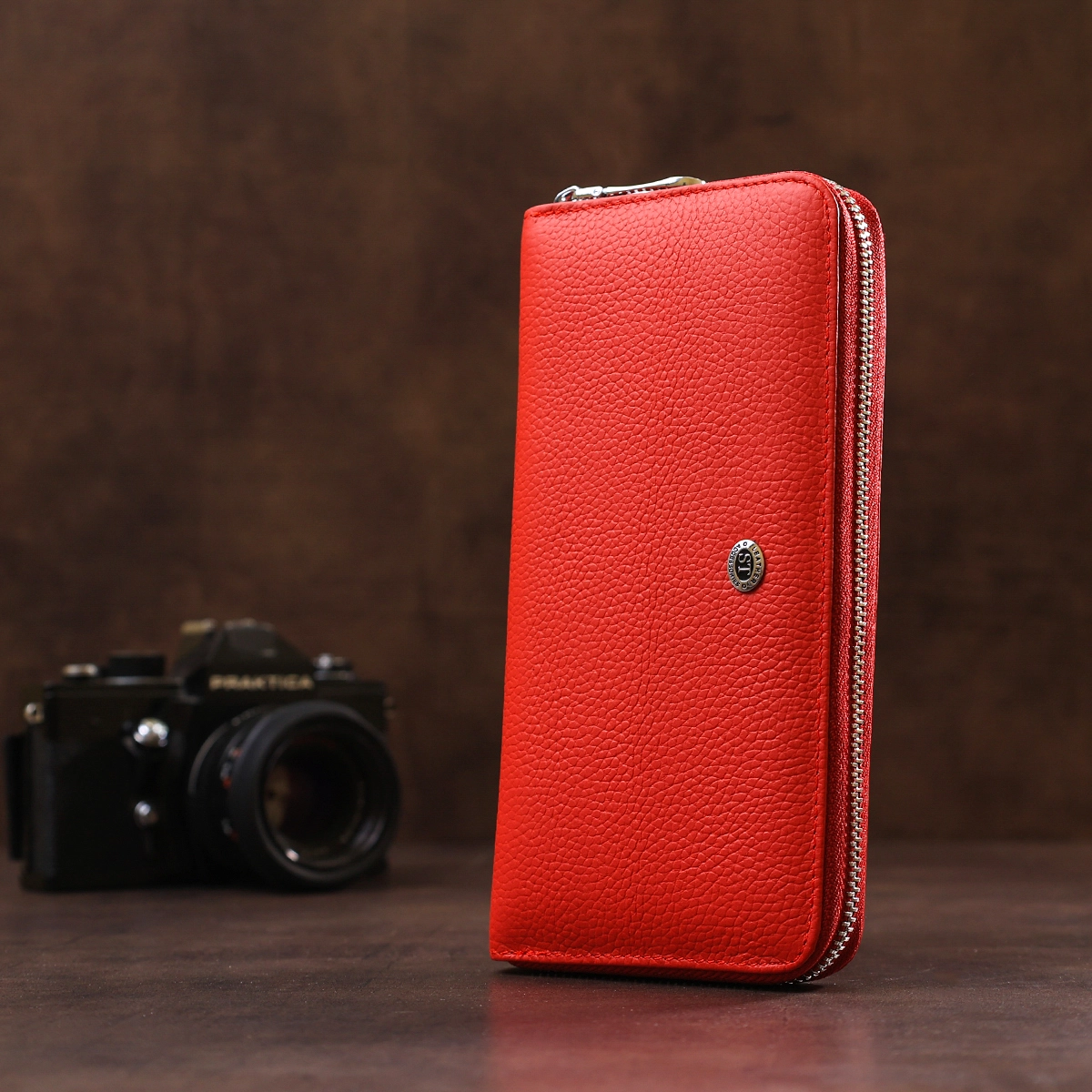 Данный кошелек выполнен из натуральной фактурной кожи в красном