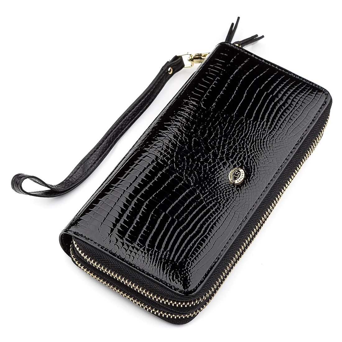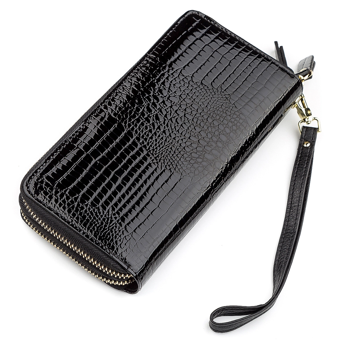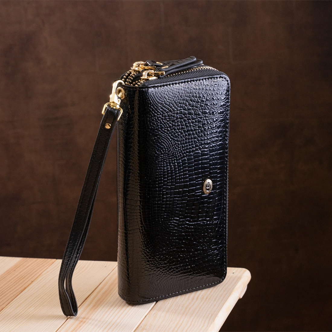 солидном черном цвете с декорированием под крокодиловую кожу. Очень