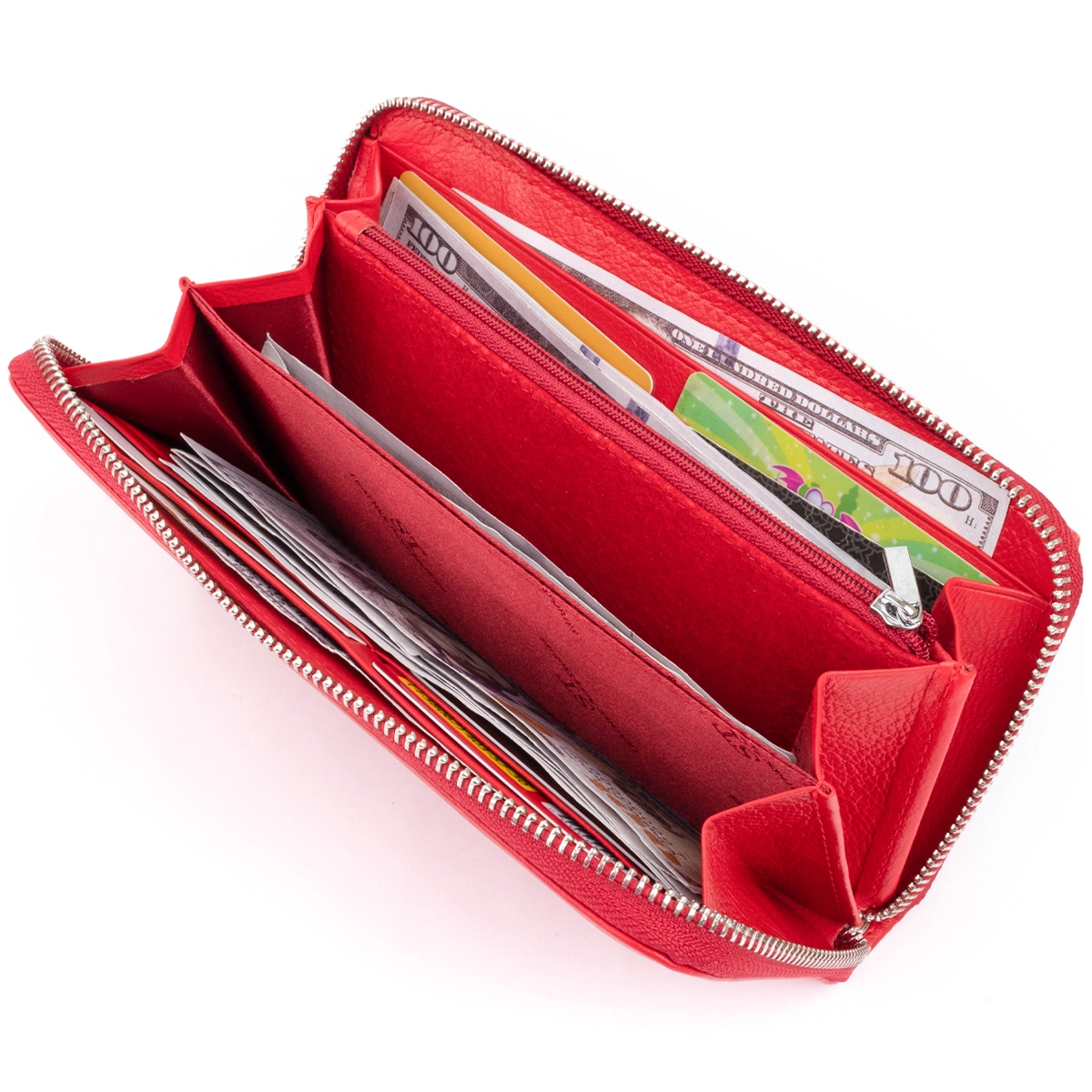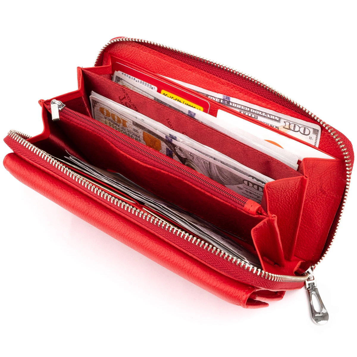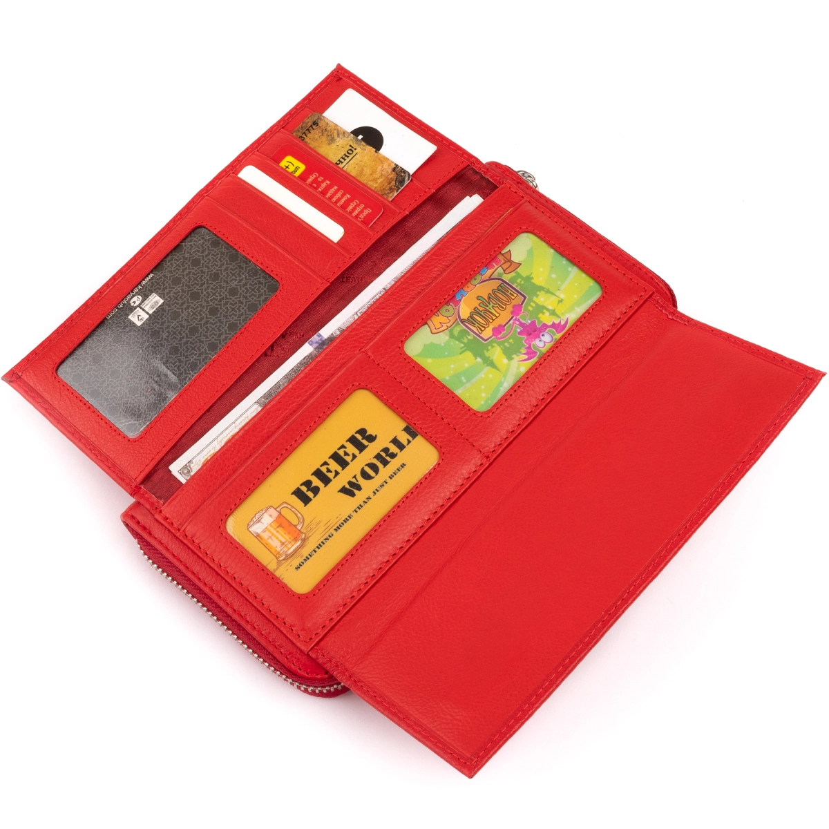 Очень вместительный кошелек-клатч яркого красного цвета из