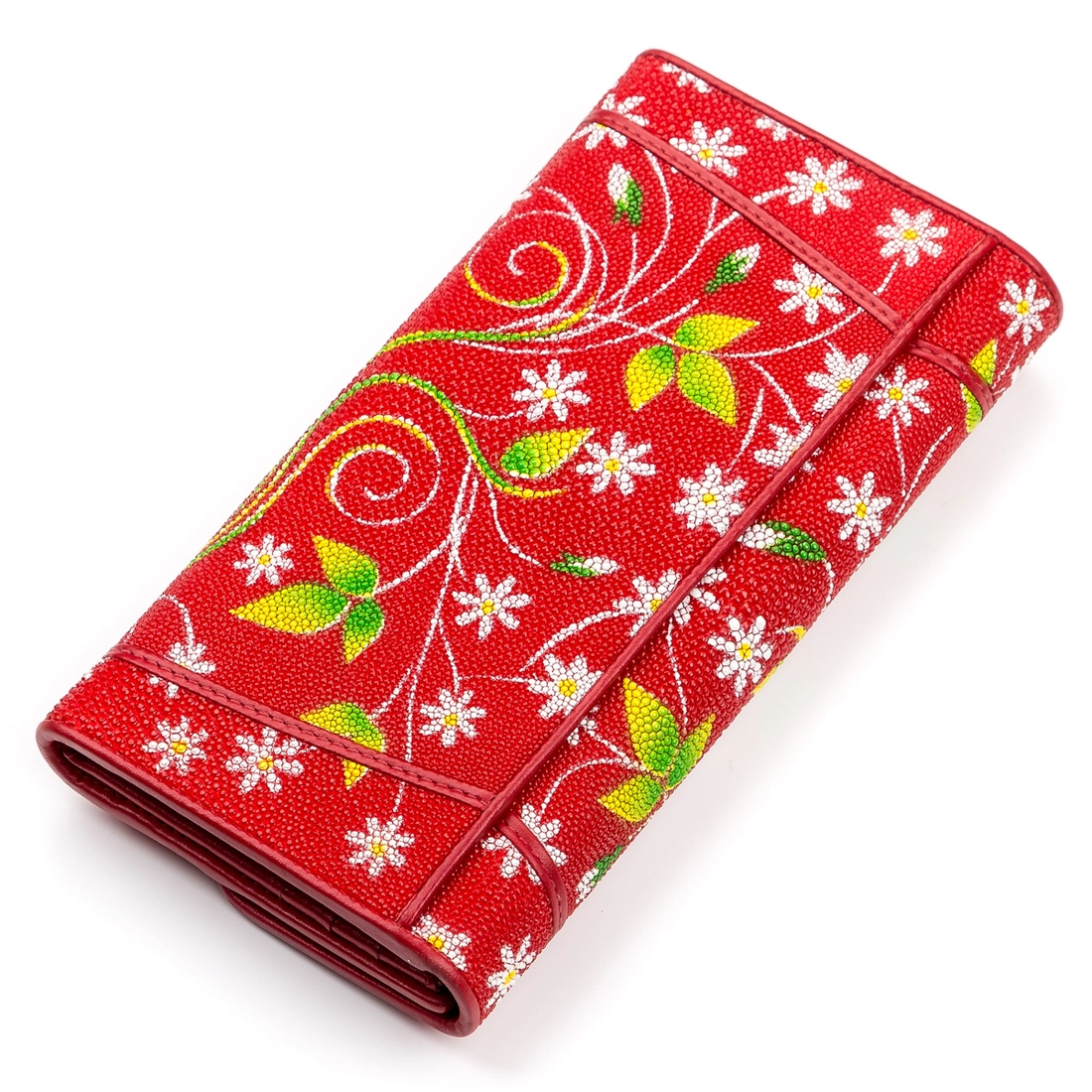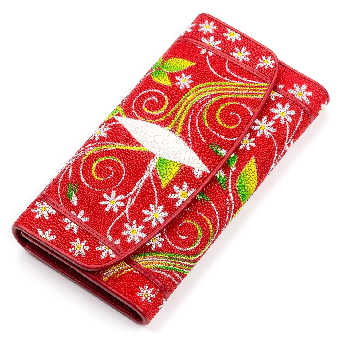 Кошелек с ярким принтом из натуральной кожи морского ската, которая