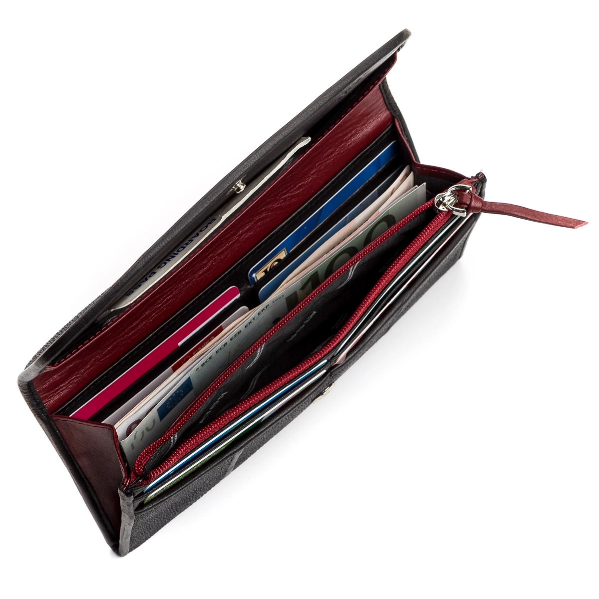 изделия из гладкой кожи черного и бордового цвета. Кошелек из кожи