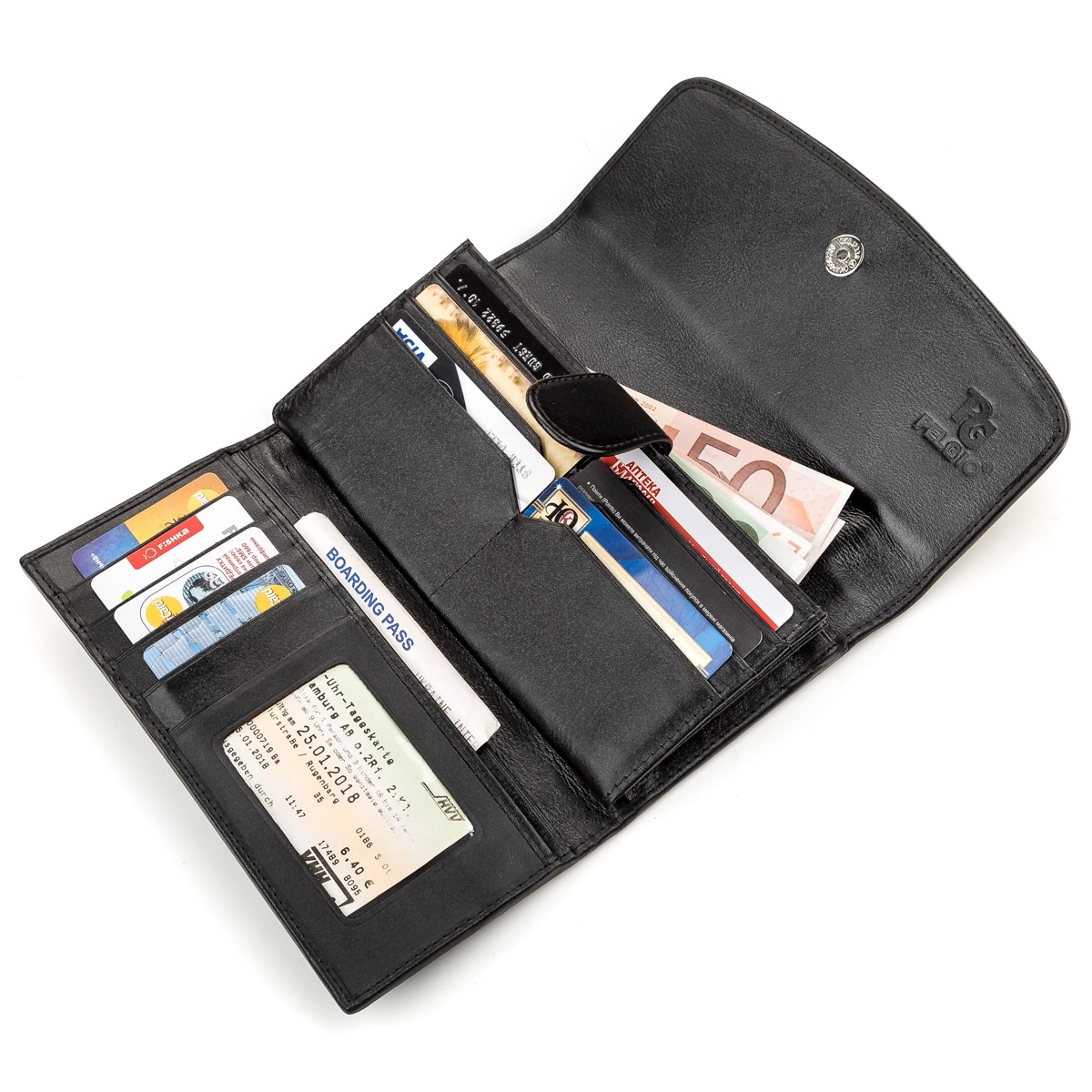 - два больших отделения для купюр;