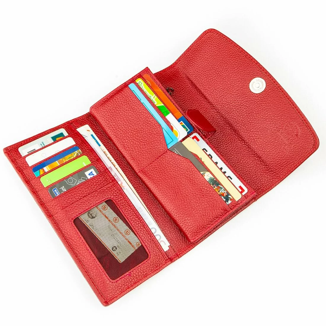 Яркий, красный женский кошелек из натуральной кожи морского
