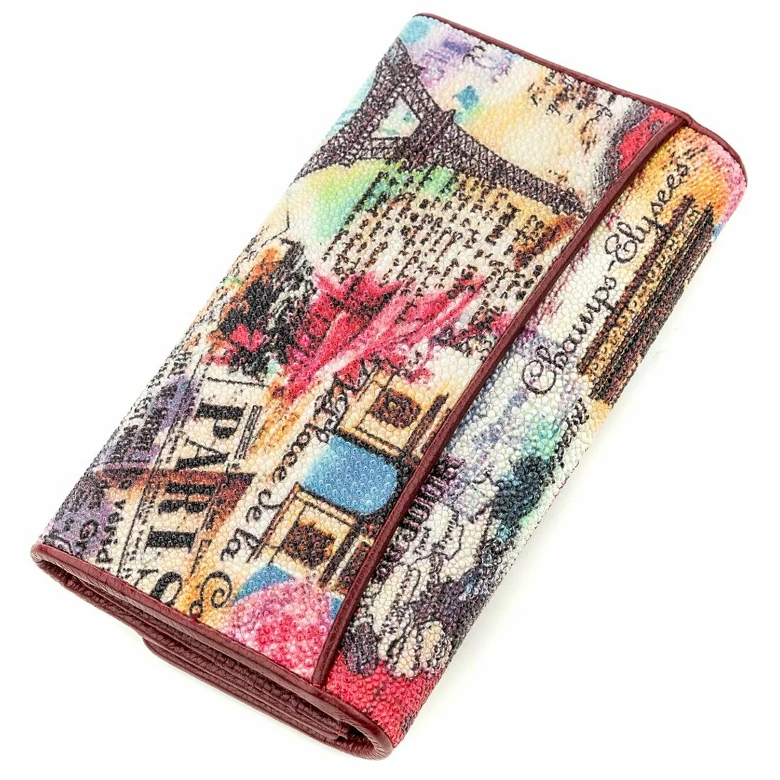 Яркий, оригинальный женский кошелек из кожи морского ската