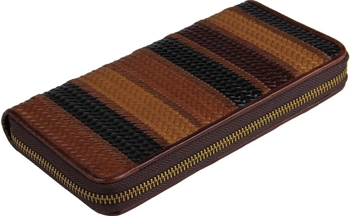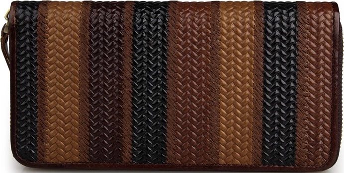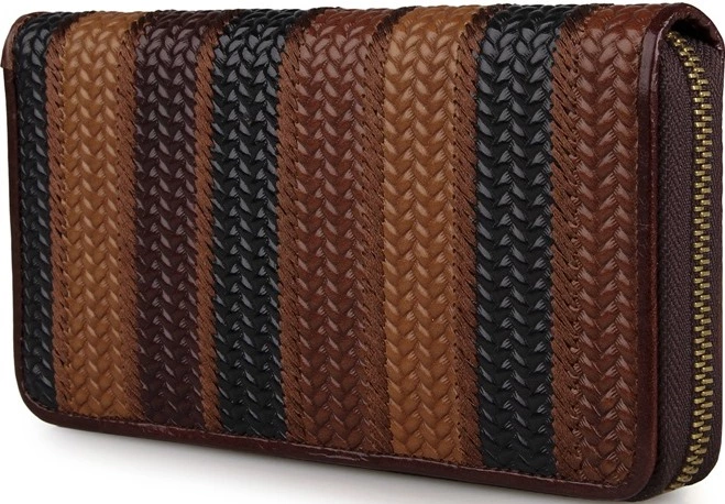 Красивый женский кожаный кошелек на молнии. Аксессуар чрезвычайно удобный и функциональный. Цвет фурнитуры: латунь. Изделие имеет очень красивый тесненный рисунок в виде косички на коже. Кошелек не упакован в коробочку, но укомплектован текстильным пылезащитным чехлом. Такой аксессуар станет превосходным решением для подарка любимой супруге, бабушке, маме или сестре к любому празднику.