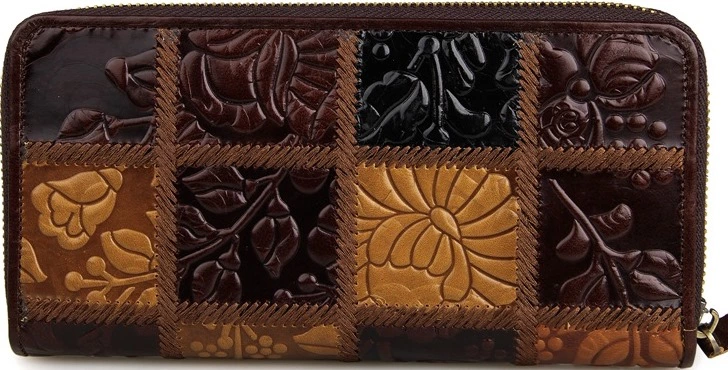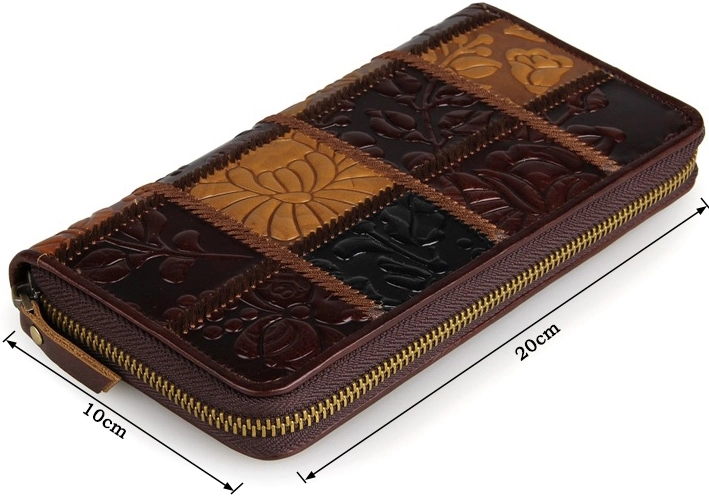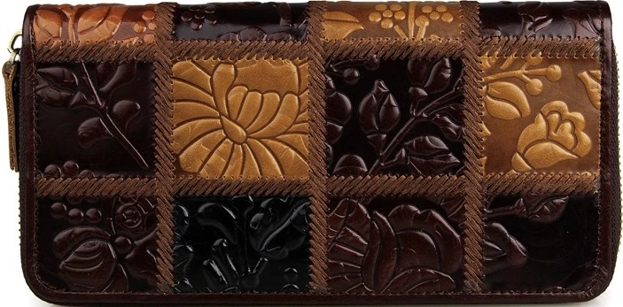 Модный женский кожаный кошелек на молнии. Аксессуар чрезвычайно удобный и функциональный. Цвет фурнитуры: латунь. Изделие имеет очень красивый тесненный рисунок на коже. Кошелек не упакован в коробочку, но укомплектован текстильным пылезащитным чехлом.