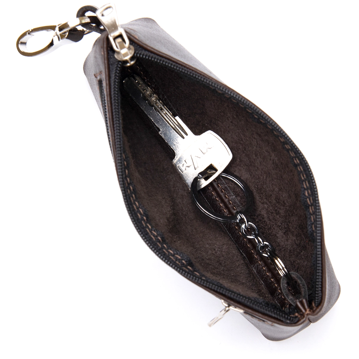- внутри кольцо для ключей;