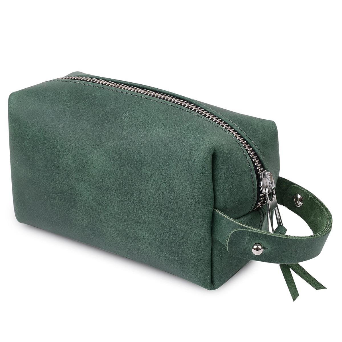Оригинальная косметичка из натуральной высококлассной кожи с матовой гладкой фактурой. Закрывается изделие на молнию, сбоку есть кожаная ручка, чтобы переносить аксессуар в руках. Такая косметичка подойдет как женщинам, так и мужчинам для хранения любых необъёмных ценностей.
