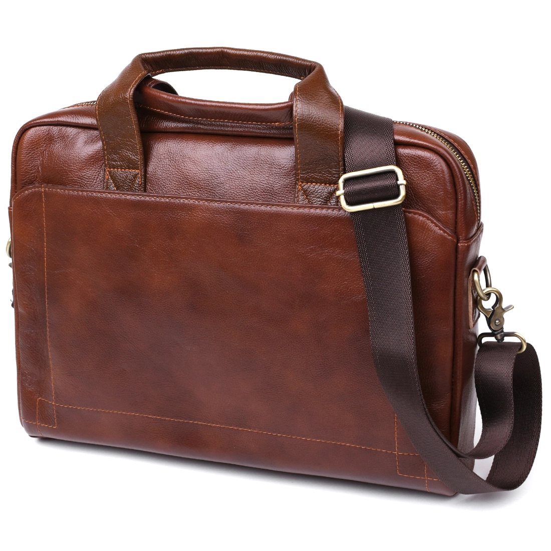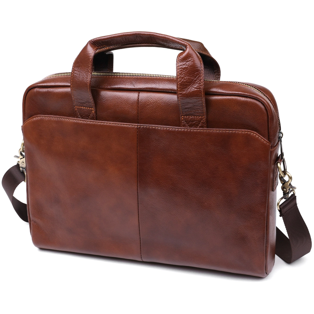 Добротная сумка-портфель для стильных и современных мужчин. Выполнена модель из натуральной высококлассной кожи, качество которой видно невооруженным глазом. Фактура изделия – зернистая с легким блеском. Внутреннее наполнение представлено просторным отделением с дополнительными карманами, также на внешних сторонах предусмотрены дополнительные карманы на кнопках.