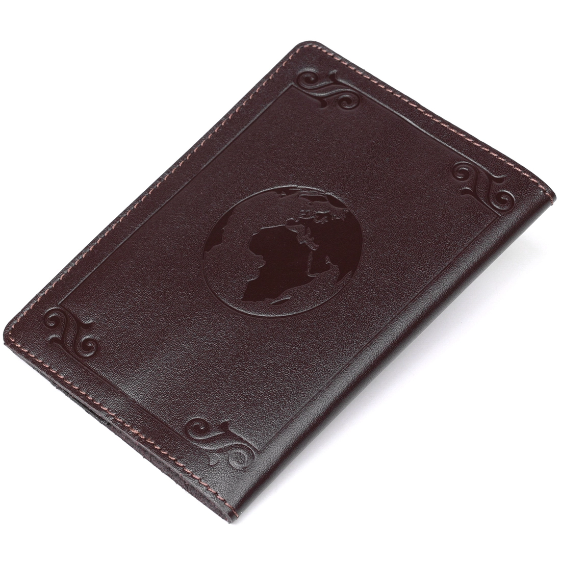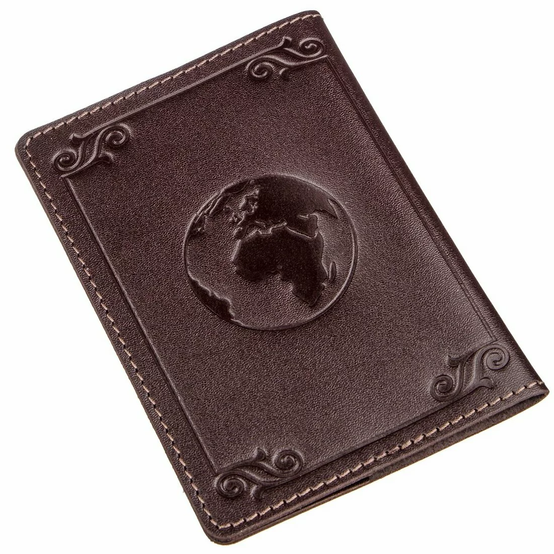 тиснение в виде рамки и карты мира. Кожаная обложка защитит ваш