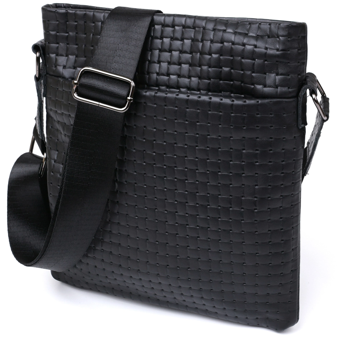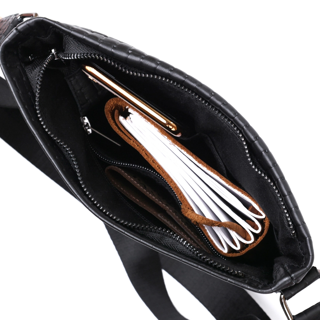 Интересная мужская сумка из натуральной кожи с повышенными показателями износоустойчивости. Имеет красивую матовую фактуру в виде переплета, что смотрится очень оригинально и необычно. Внутреннее наполнение представлено просторным основным отдалением и внешними карманами на молнии.