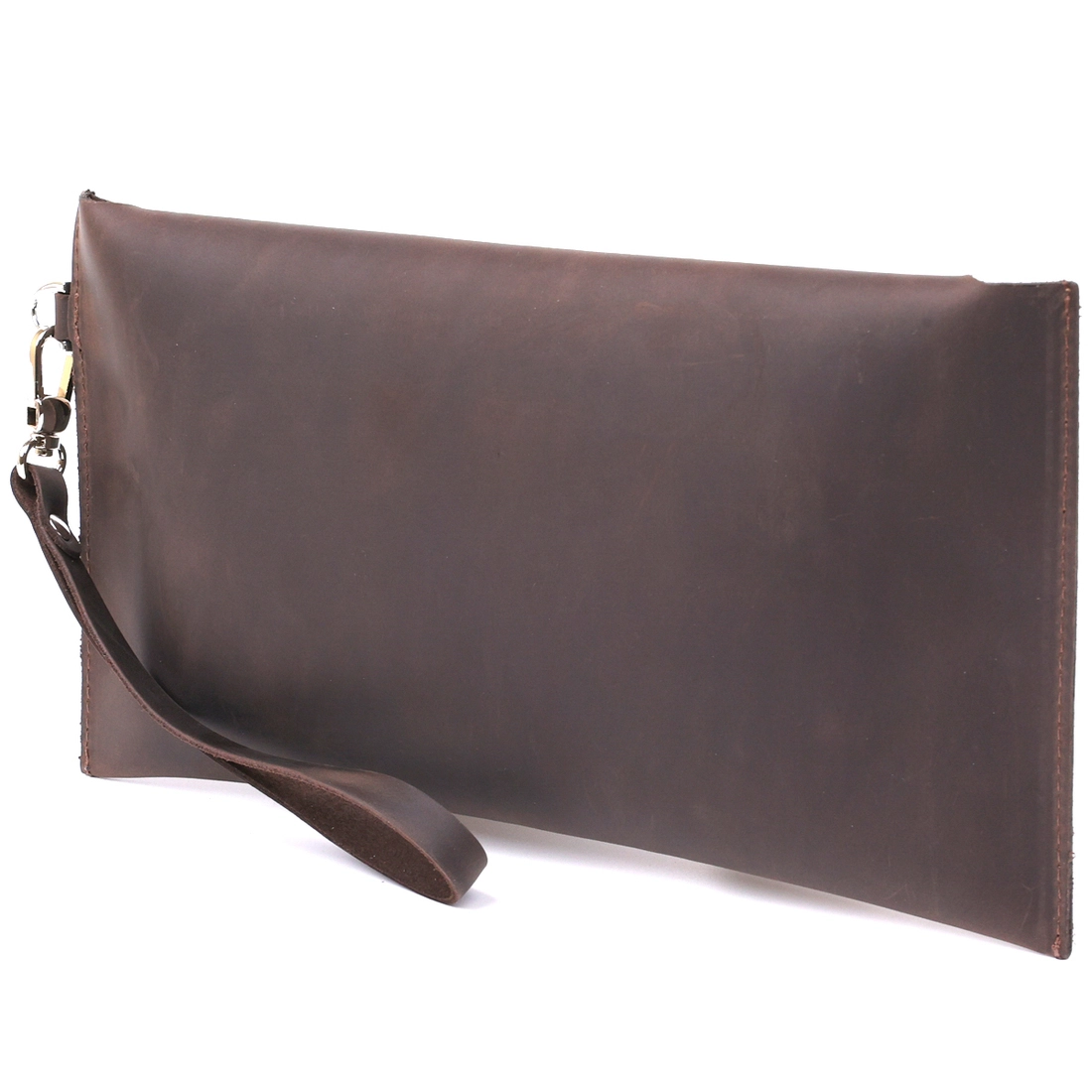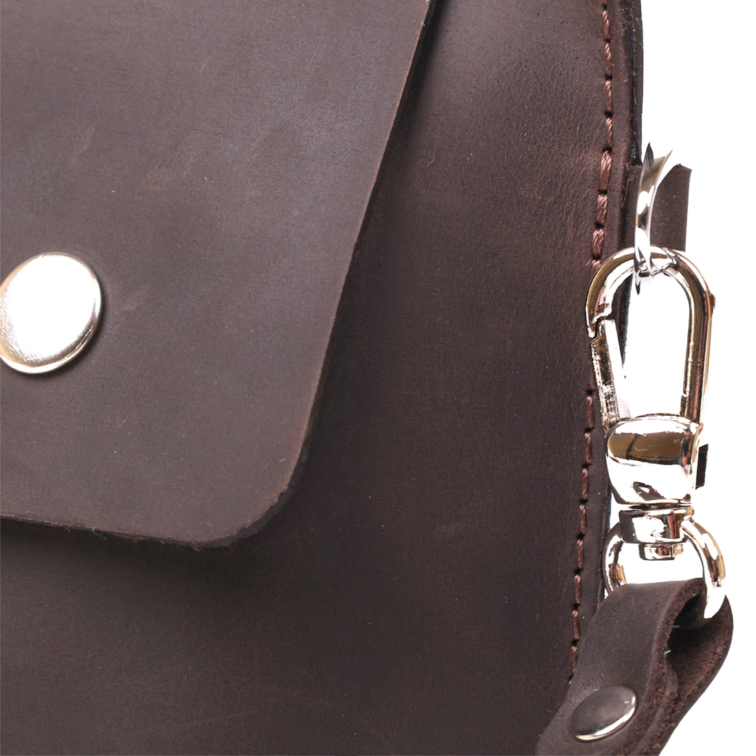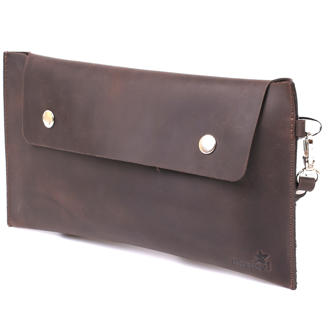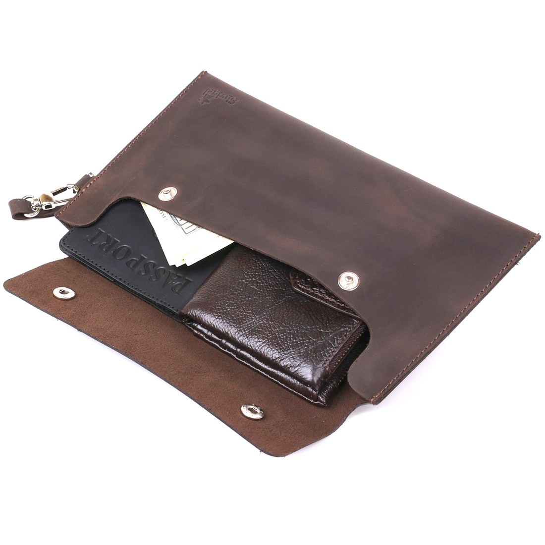 Мужская винтажная тревел-косметичка для хранения ценных вещей и документов. Выполнена из натуральной высококлассной кожи украинским производителем. Цвет изделия – матовый темно-коричневый, фактура – гладкая и очень приятная на ощупь. Закрывается на удобный клапан с двумя кнопками в цвете под серебро. Ремешок отстегивается и выполнен также из натуральной кожи.