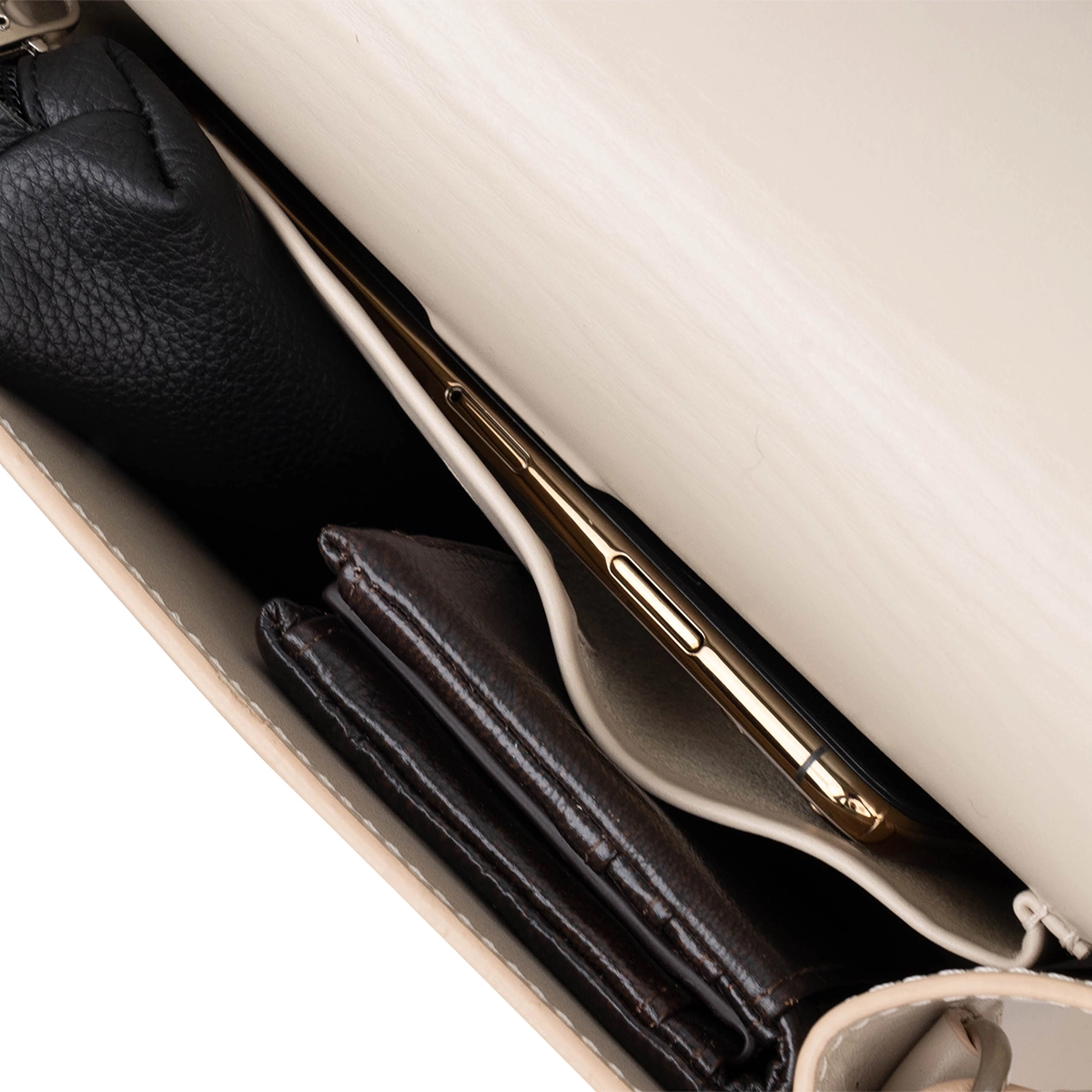 Изысканная деловая женская сумка в красивом благородном бежевом цвете. Выполнена из добротной натуральной кожи высокого качества с отличными эксплуатационными характеристиками. Внутри есть одно просторное отделение и карман на магните для телефона или прочего. Ремень кожаный с возможностью регулировки по длине. Упаковано сумка в фирменный чехол.