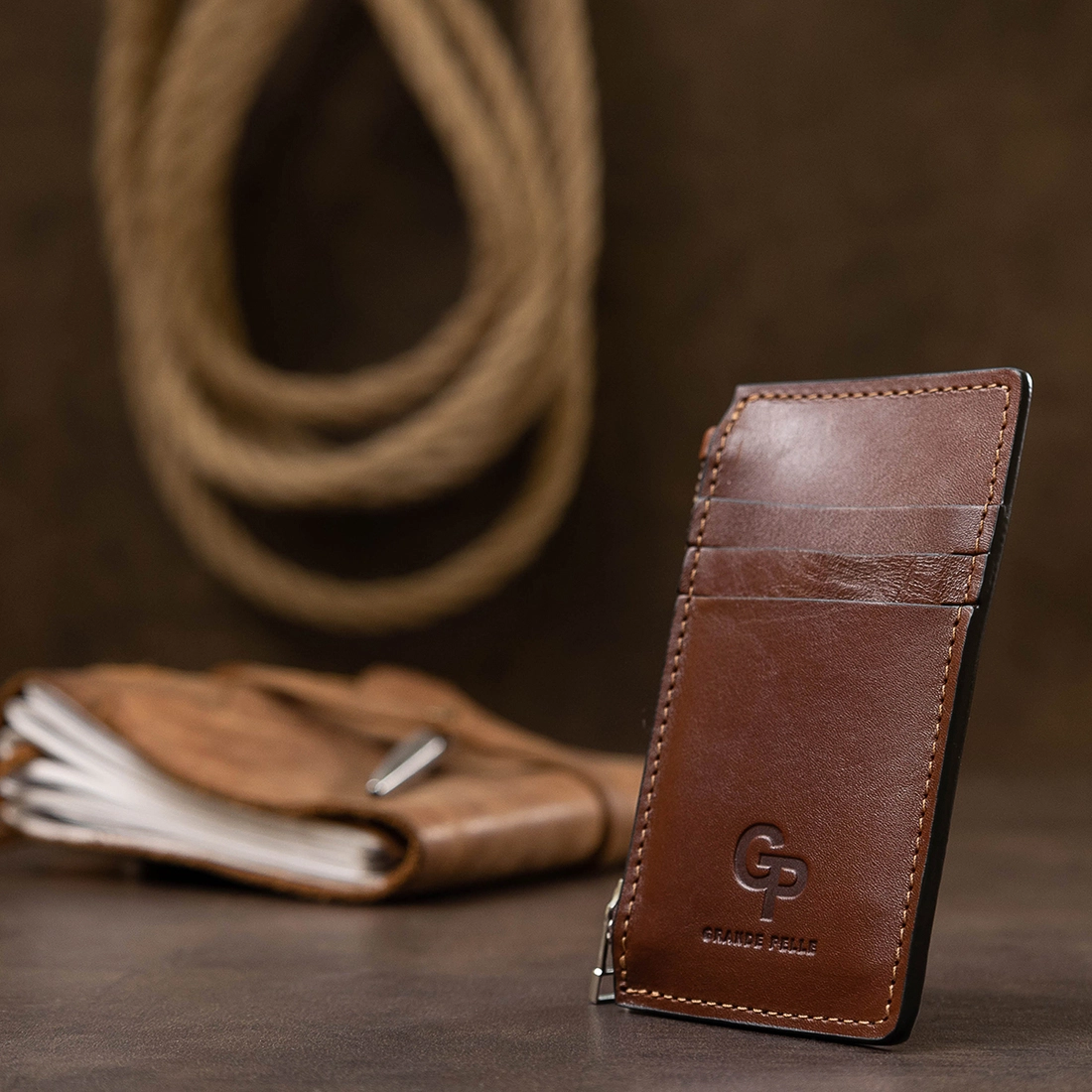 Практичный мужской картхолдер для небольшого количества карт, но которые всегда должны быть под рукой. Выполнен из натуральной износоустойчивой кожи. Цвет изделия – коричневый, что смотрится очень стильно. Упаковка представлена в виде уплотненного фирменного чехла.