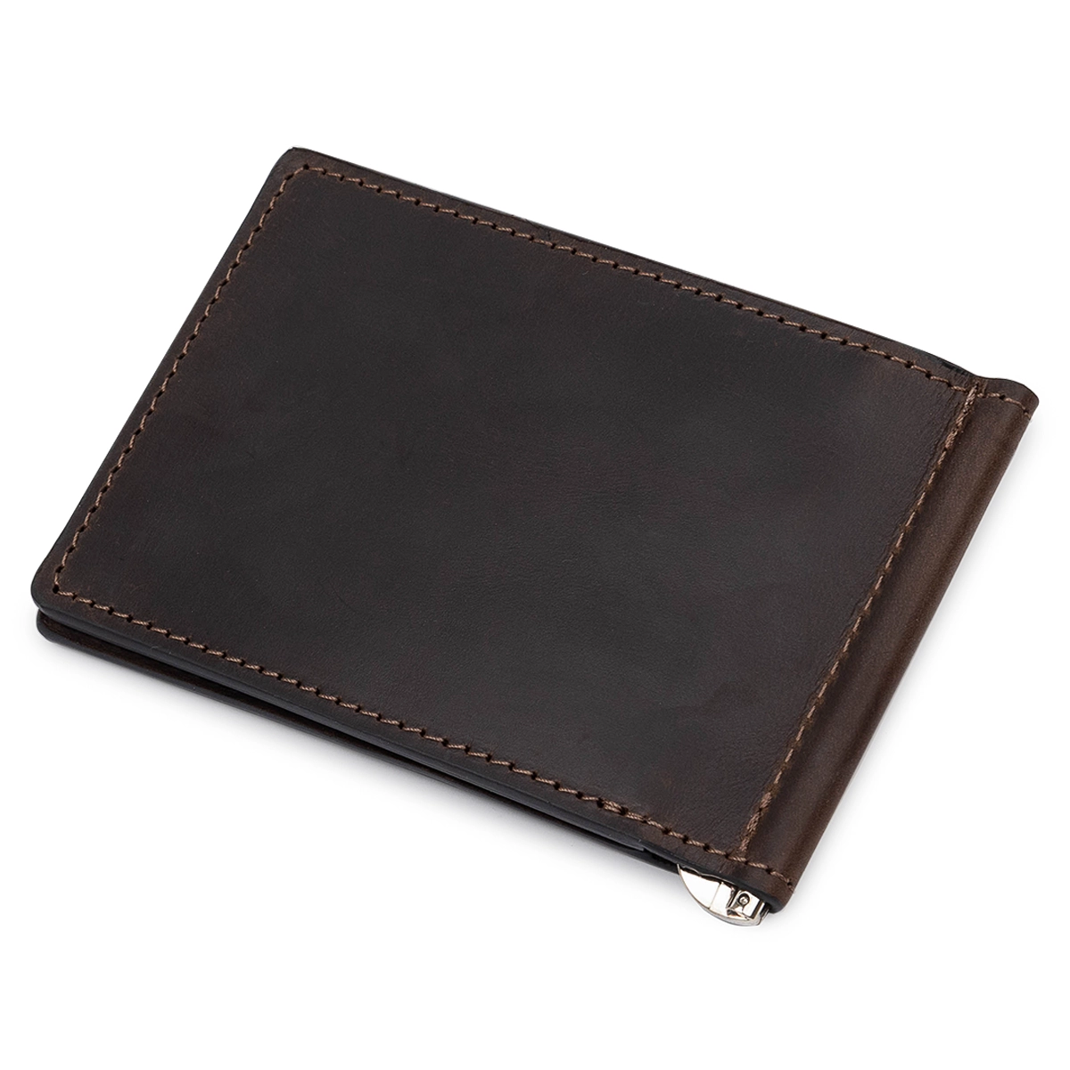 Красивый мужской зажим для денег в шоколадном цвете, что смотрится очень стильно. Материал изготовления – натуральная кожа с отменными эксплуатационными характеристиками. В такой зажим можно положить не только купюры, но и различные карточки, что очень удобно и практично.