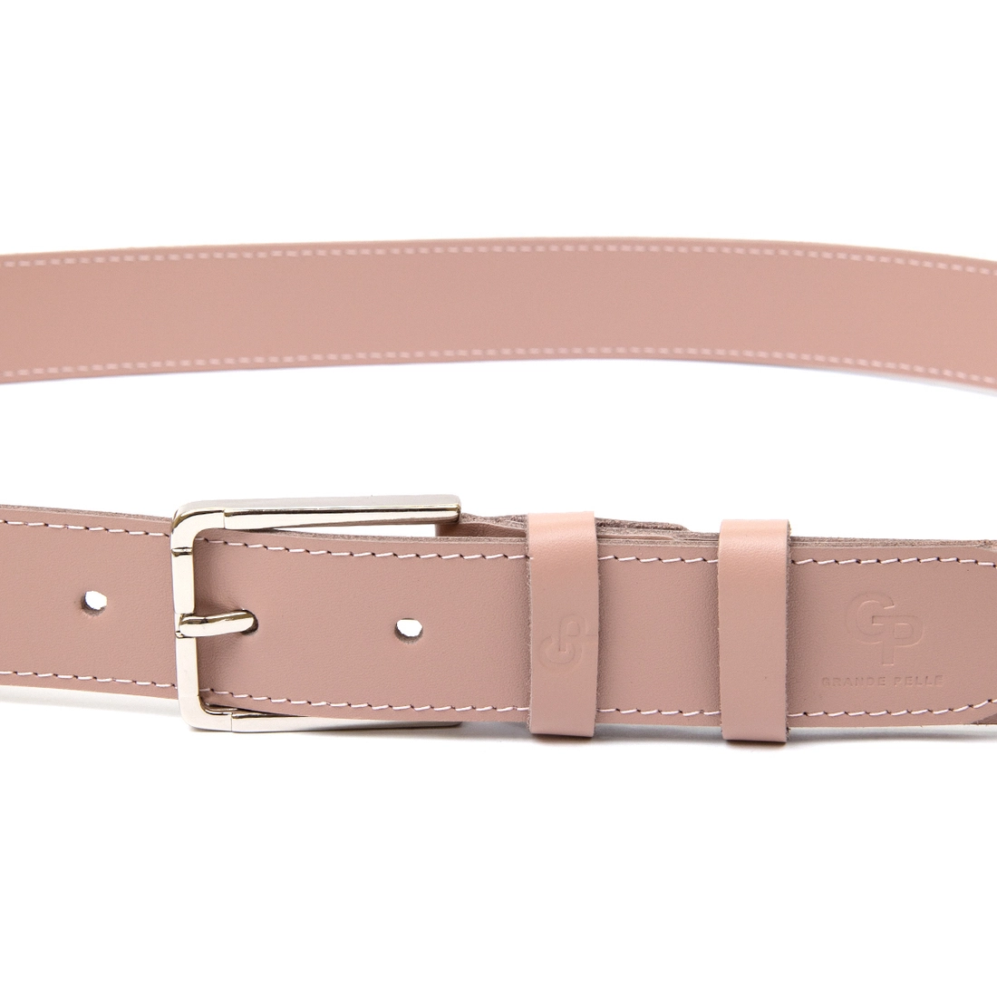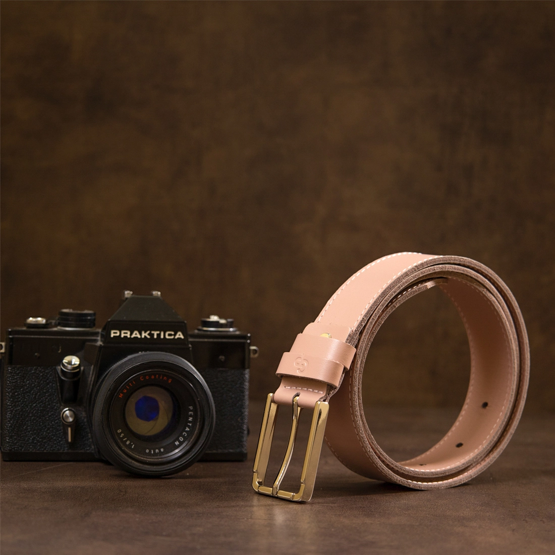 Красивый неброский женский ремень в бледно-розовом слегка уловимом оттенке. Материал изготовления – высокопрочная добротная кожа. Пряжка имеет лаконичный сдержанный дизайн. Отличный подарок любимой женщине.