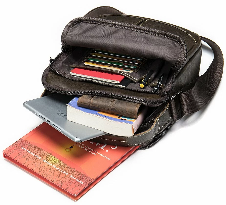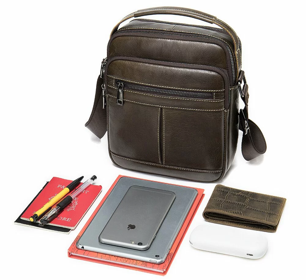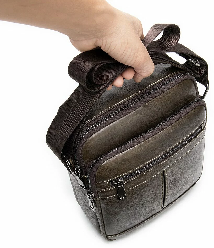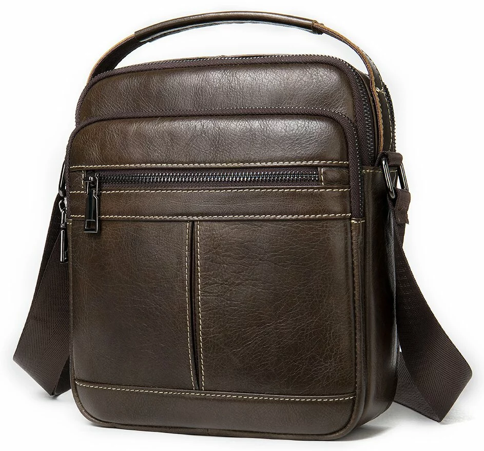 Кожаный коричневый мессенджер среднего размера. Сумка на два