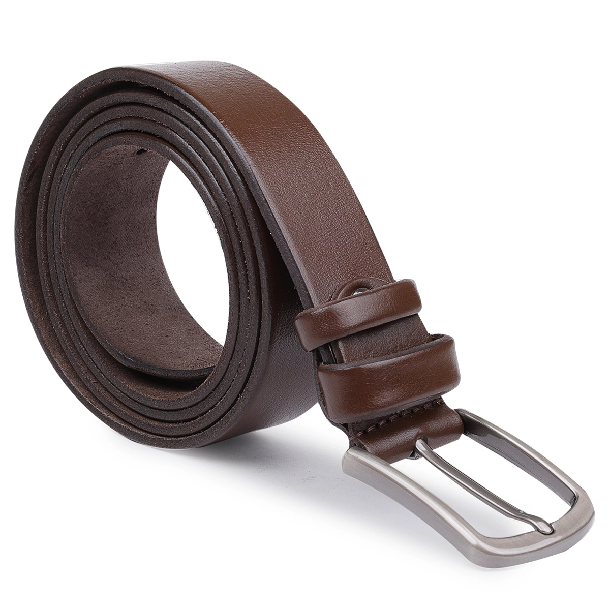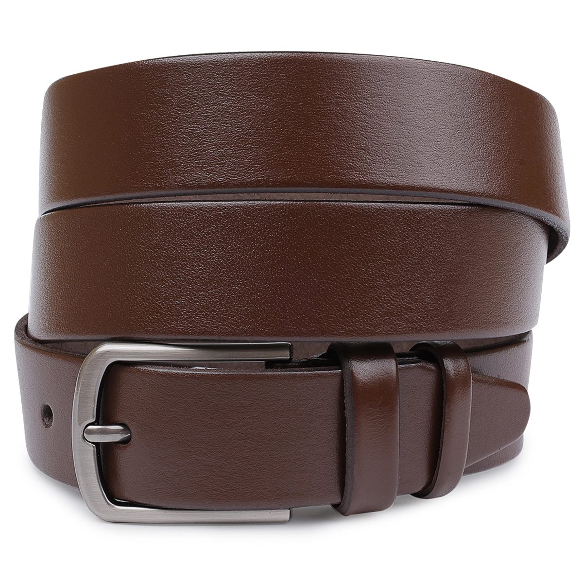 Добротный мужской ремень средней длины в универсальном коричневом цвете. Имеет гладкую и приятную на ощупь фактуру и классическую пряжку в строгом неброском дизайне. Изготовлен ремень из натуральной высокопрочной кожи и имеет высокие показатели устойчивости к износу.