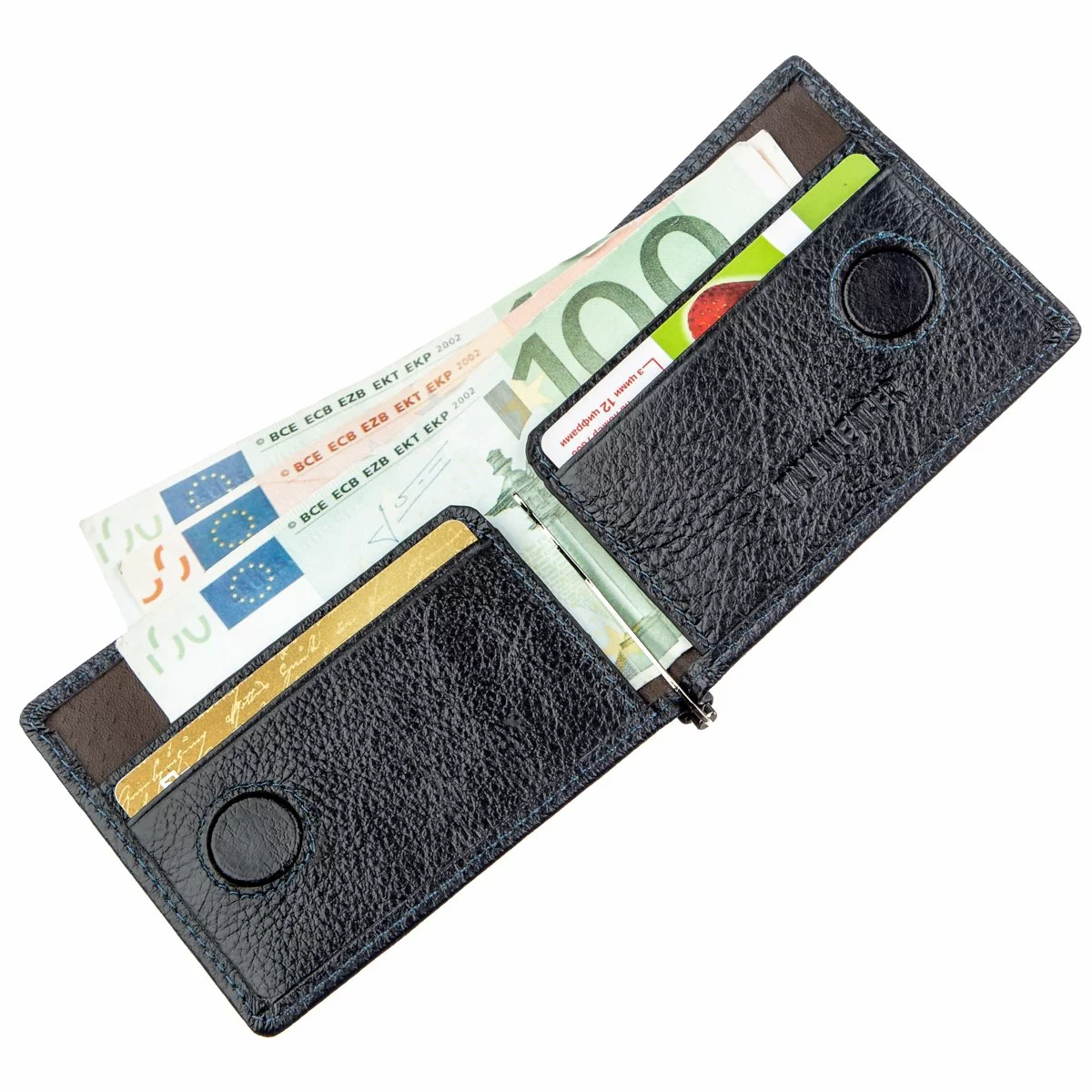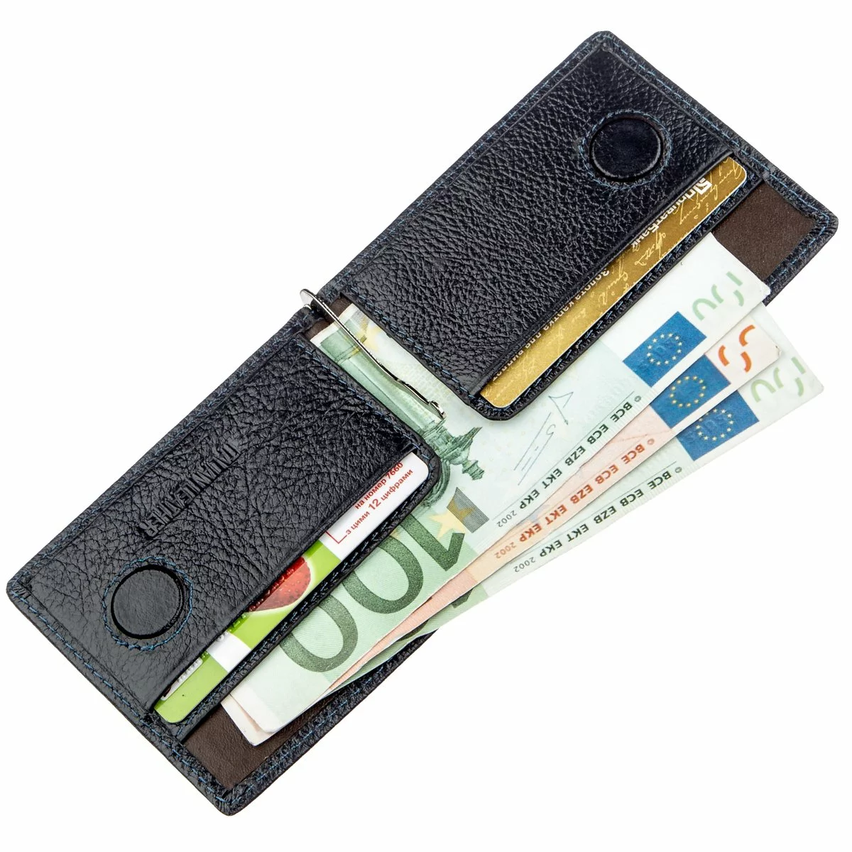 - внутри расположен металлический зажим для купюр;