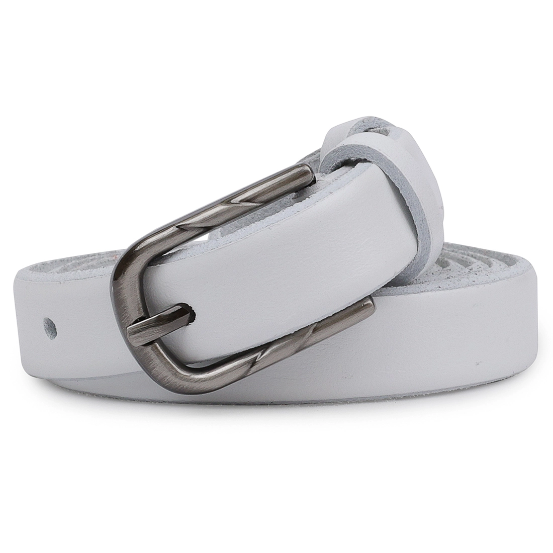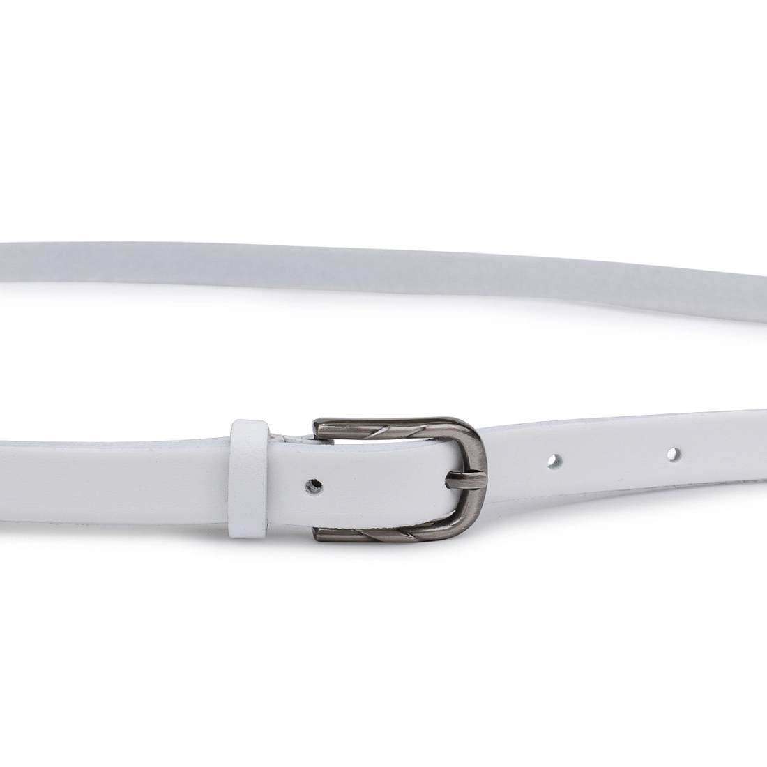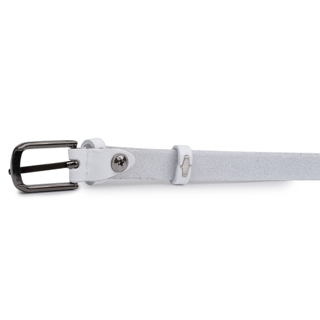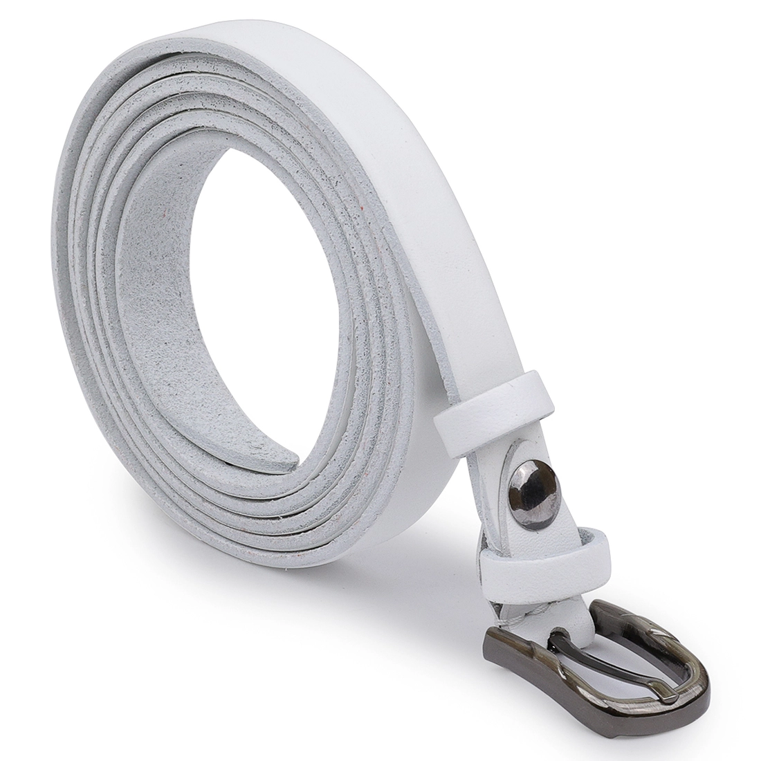 Универсальный женский поясок в белом цвете от украинского производителя. Имеет красивую аккуратную пряжку в классическом стиле. Материал изготовления – натуральная высокопрочная кожа с отменными показателями в процессе эксплуатации. Такой ремень станет хорошим и практичным подарком на любой праздник.
