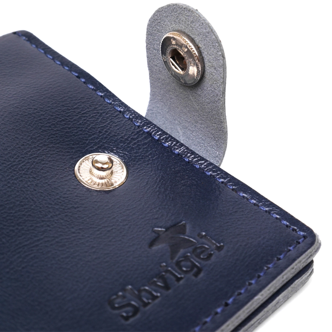 Компактное стильное портмоне в стильном аккуратном дизайне. Выполнен аксессуар из натуральной кожи высокого качества и повышенной стойкостью к износу. Внутри есть просторное основное отделение на всю длину, карманы для пластиковых карточек и монетница на кнопке. Цвет изделия – темно-синий, фактура – гладкая.