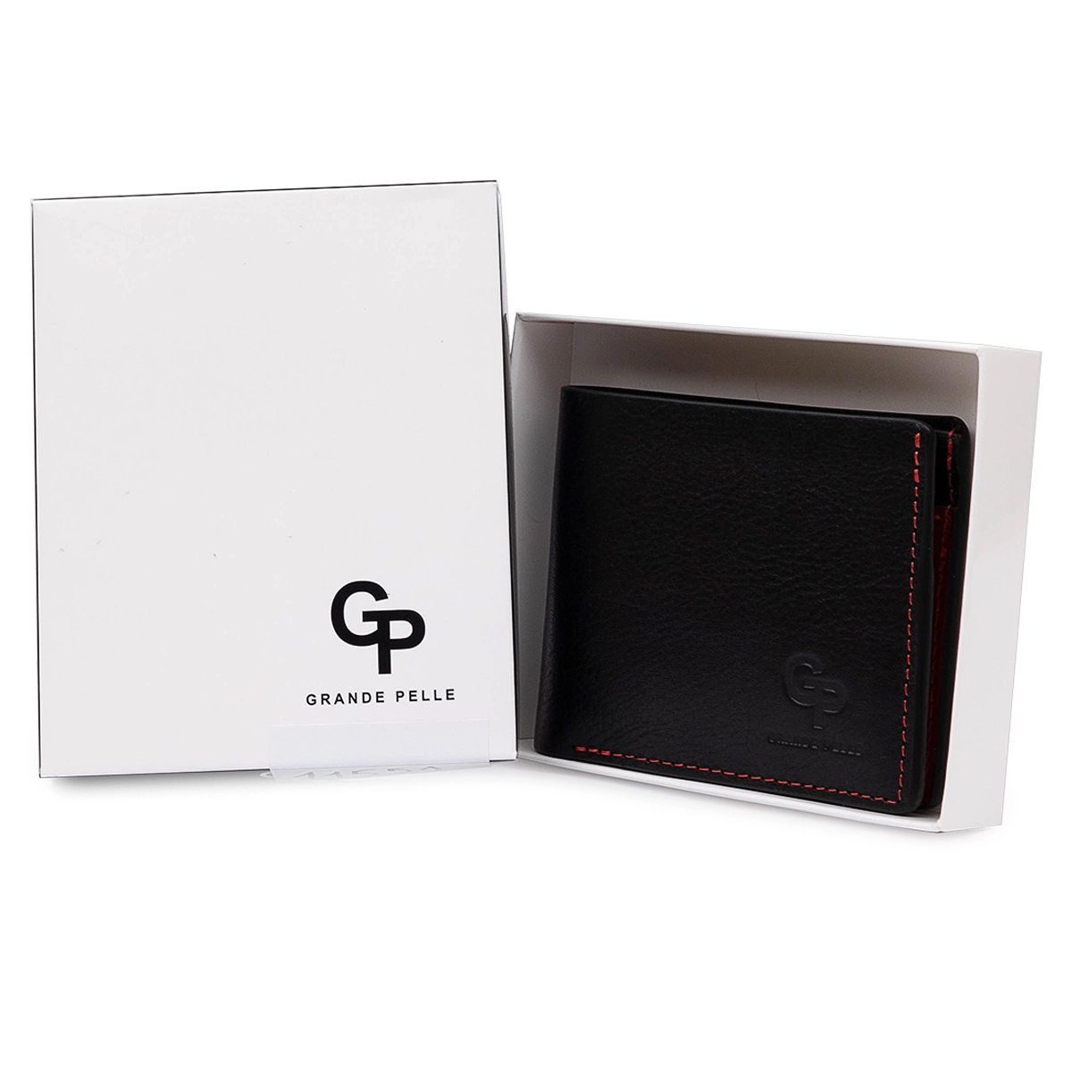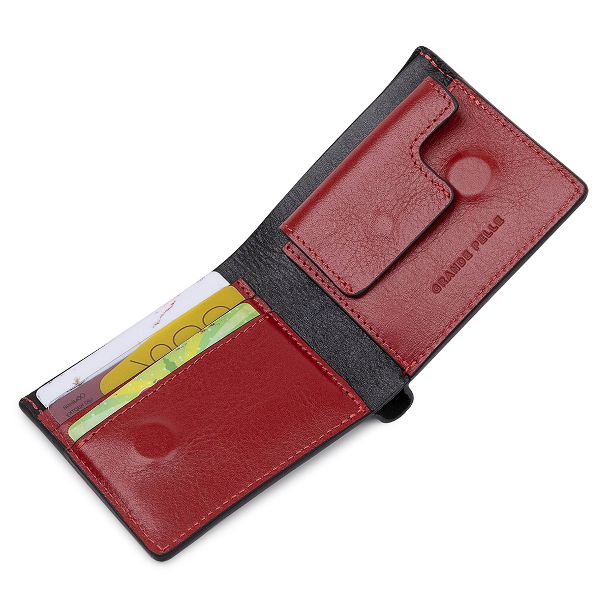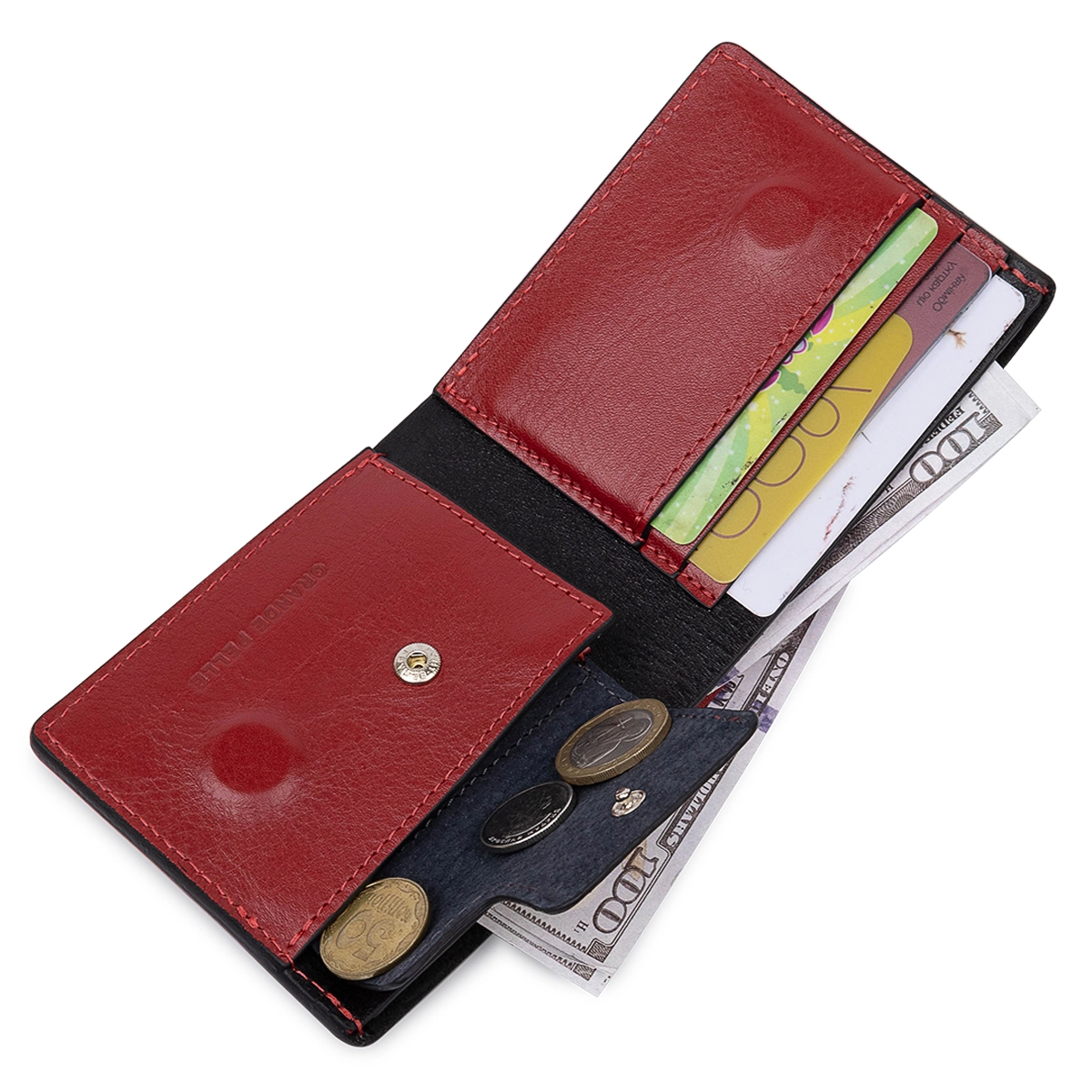 Стильное портмоне из натуральной высококачественной кожи, которая устойчива к различным повреждениям. Имеет красивое сочетание черного и красного цвета внутри, также по периметру проходит красная строчка. Фактура кожи – гладкая с легким переливом. Внутри два вместительных отделения, слоты для карт и удобная монетница на кнопке. Упаковано изделие в фирменную коробку.