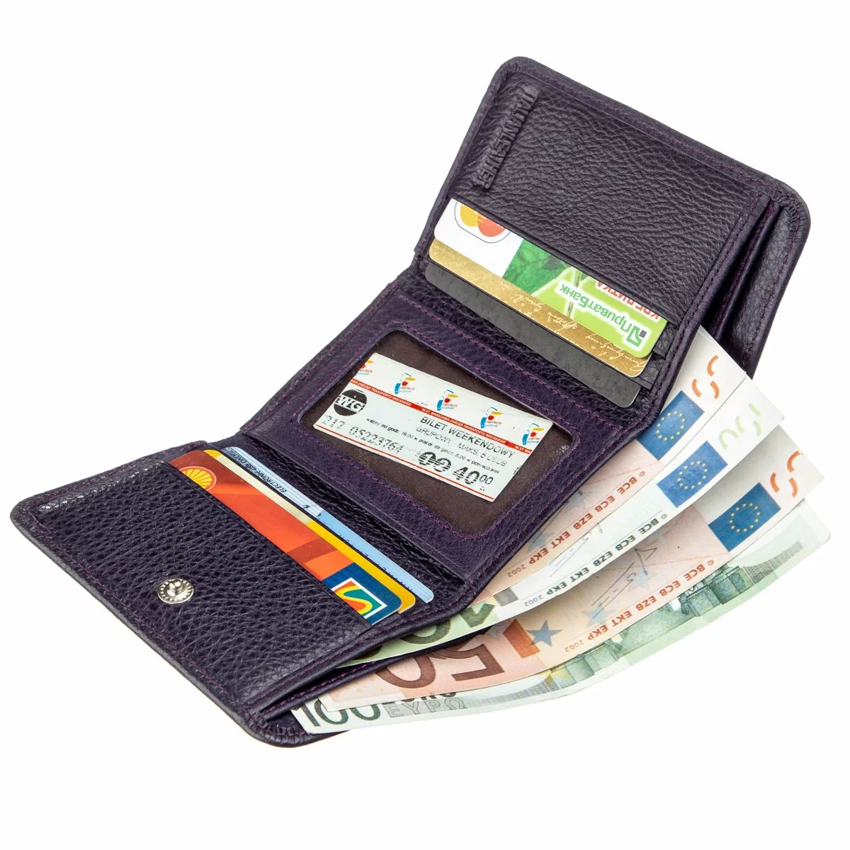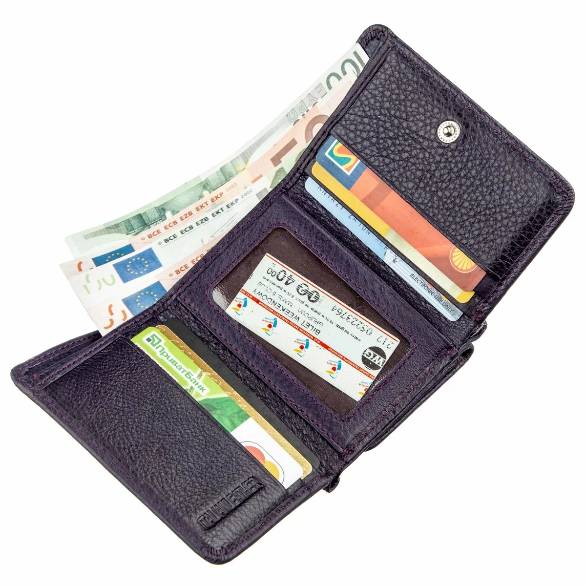 Красивый кошелек для женщин с особым вкусом и чувством стиля. Выполнен из натуральной кожи высококлассного качества. Имеет красивейший фиолетовый цвет с серыми нотками и матовым оттенком. Кошелек имеет два автономных отделения на кнопках. В первом присутствует двойная монетница, а во втором - два больших отделения для купюр, отделение для фото и шесть карманов для различных карт и визиток. Этот замечательный аксессуар может стать Вам прекрасным подарком. При покупке данный бумажник будет упакован в плотную картонную коробку с фирменным логотипом.